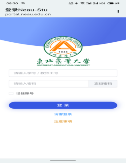 1.新生连接校园网前,请先访问https://authserver.neau.edu.cn/进行统一身份认证账号首次登陆及修改密码(默认密码身份证后6位(其中X大写))。老生不用此步骤!