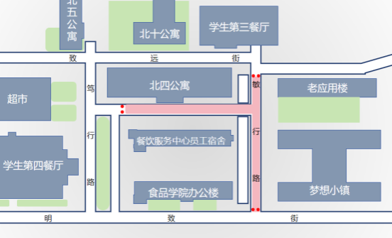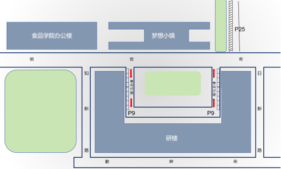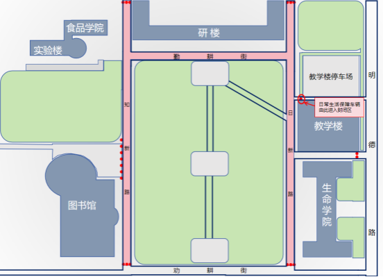 3. 食品学院办公楼周边道路:实施全路段禁停管理,禁止任何车辆停放。该区域车辆可移至研楼周边或食品学院实验楼停车场停放,请相关车主合理规划停车路线,避免影响教学科研及办公秩序。