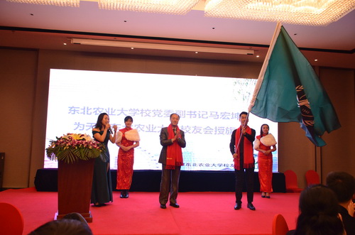 会上,天津校友会筹委会秘书长李泽玥作筹备工作报告;车可舒宣读《东北农业大学天津校友会第一届理事会成员提名名单》,大会审议并表决产生了第一届理事会;马宏坤宣布东北农业大学天津校友会成立,向首任会长司雪峰授校旗,并接受了天津校友会向母校赠送的礼物;马宏坤、车可舒为第一届理事会成员颁发了聘书。