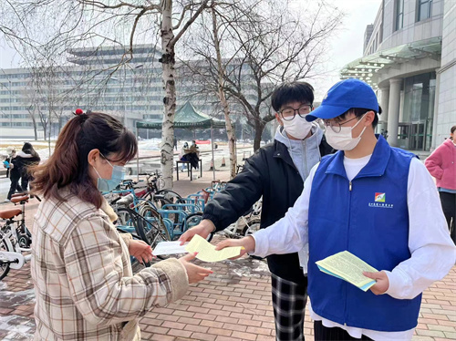 3月8日,校学生会在图书馆前设立宣传点,开展了“你的好奇疑惑,我们解答”活动,为过往学生发放科普传单并赠送定制口罩。