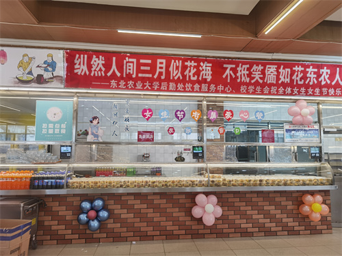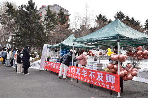 校后勤管理处饮食服务中心推出节日专属点心,共计制作了10个品类、8000余块点心,包括香甜梅花酥、白皮酥、红豆饼干、葡萄酥、小桃酥、花生酥、黑芝麻小饼干、香甜豆沙酥、白芝麻小饼干、黑豆沙馅小饼,每个餐盒分装4种不同的点心,每一种点心都香甜酥脆,各有特色,独具风味。3月7日,后勤管理处饮食服务中心携校学生会在北四餐厅和南区新一餐厅各开辟一个女生专属窗口,为女同学们免费发放无任何添加剂的精致美味点心礼盒以及美容养颜的红枣小米红糖粥。同时,校学生会在南北区各设一个室外宣传点,精心准备了800份美味糕点,1500个填画标语的气球以及1600份亲手写满祝福精美贺卡,仅用半个小时,4000份精美礼品就被热情的女同学们领取完毕。
