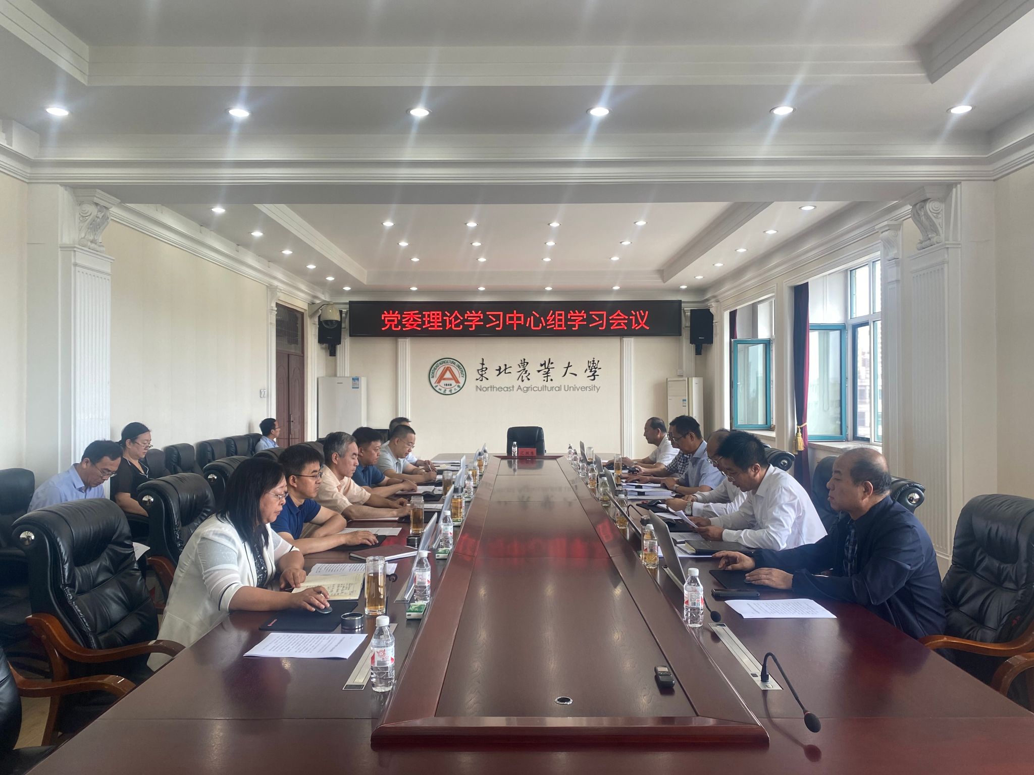 7月7日,东北农业大学召开党委理论学习中心组学习会议,认真学习习近平总书记对党的建设和组织工作作出的重要指示精神以及习近平总书记在中共中央政治局第六次集体学习时发表的重要讲话精神。校党委书记李长生主持会议并讲话,校党委副书记、校长付强,全体校领导、党委常委参加会议。