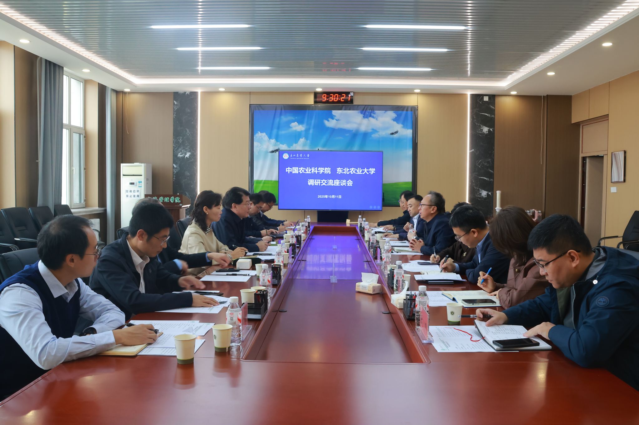 刘现武详细介绍了中国农业科学院的历史、发展现状及研究生联合培养等方面情况。他表示,中国农业科学院与我校有着长期、多方面的合作,此次调研更深切感受到了东农深厚的底蕴,期待以此次交流为契机,进一步发挥中国农业科学院对俄农业合作示范园区、黑龙江试验基地的作用,依托我校学科优势,深化双方在人才联合培养、科研项目攻坚、服务“三农”等方面的合作。