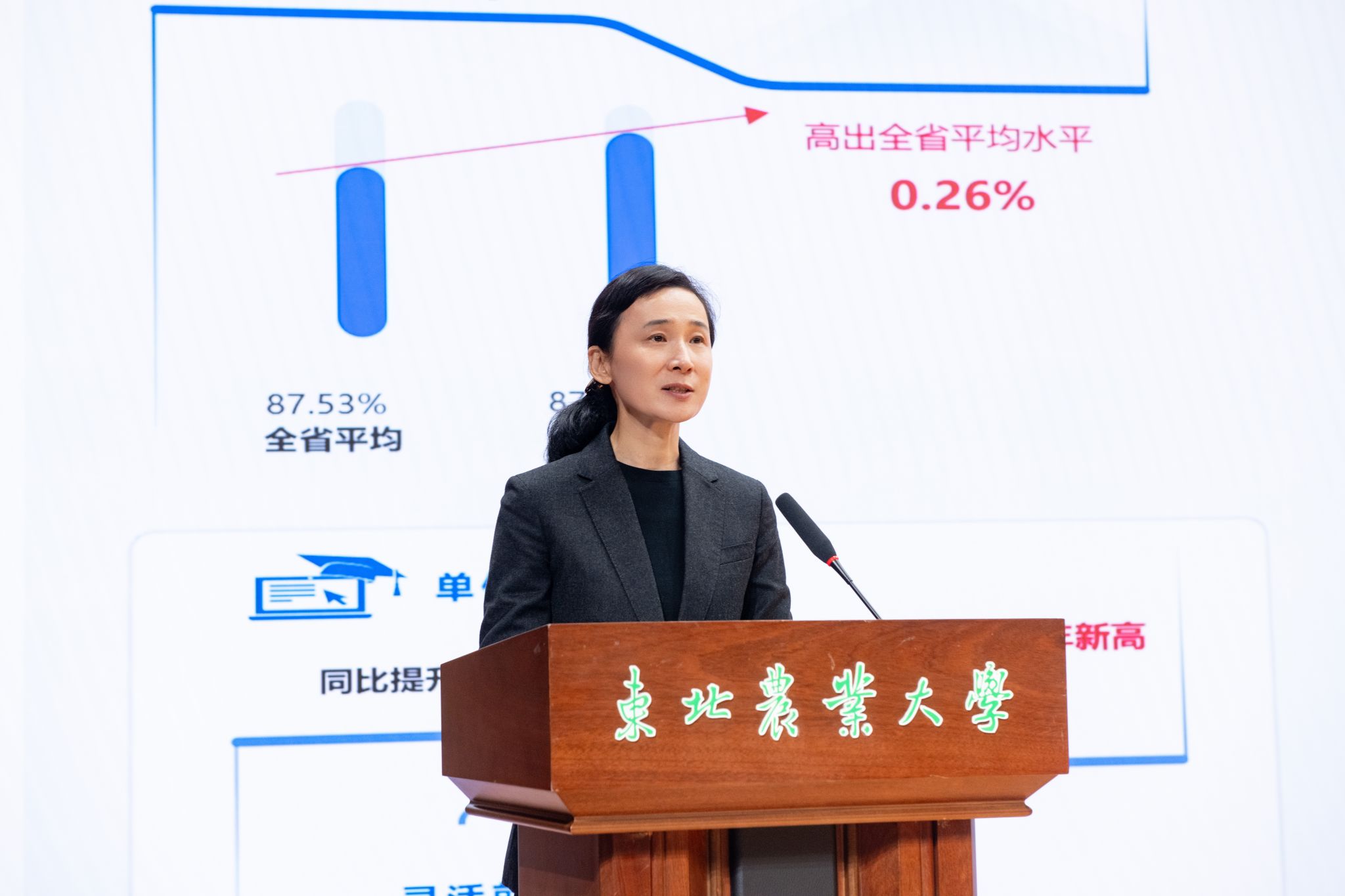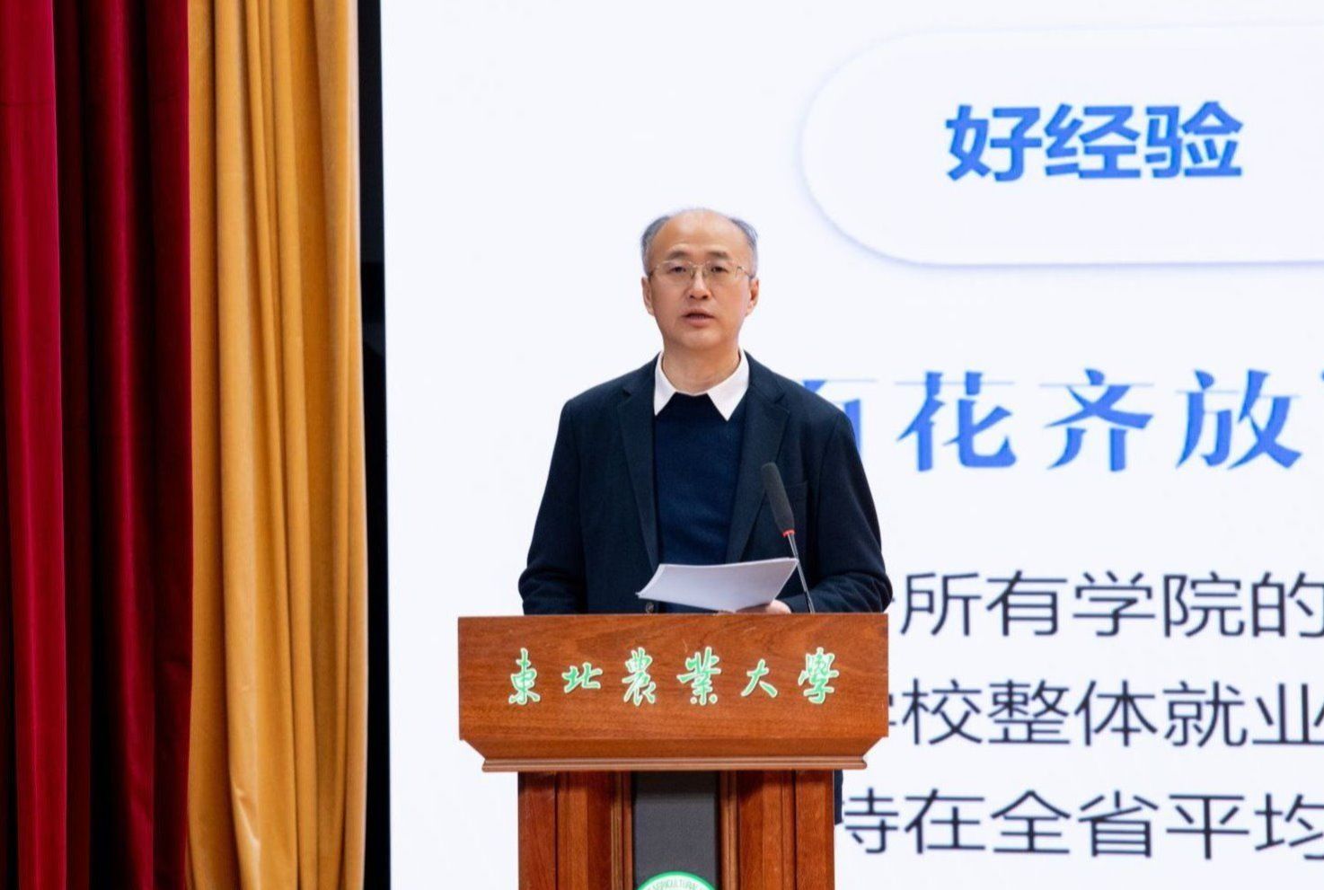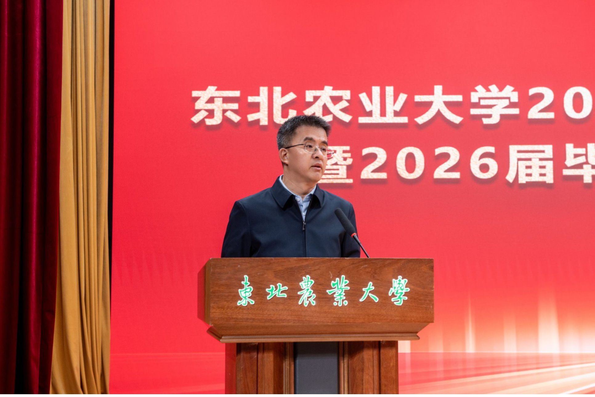 姜毓君宣读《东北农业大学关于表彰2025届毕业生就业工作先进个人的决定》,并为获奖个人颁奖。