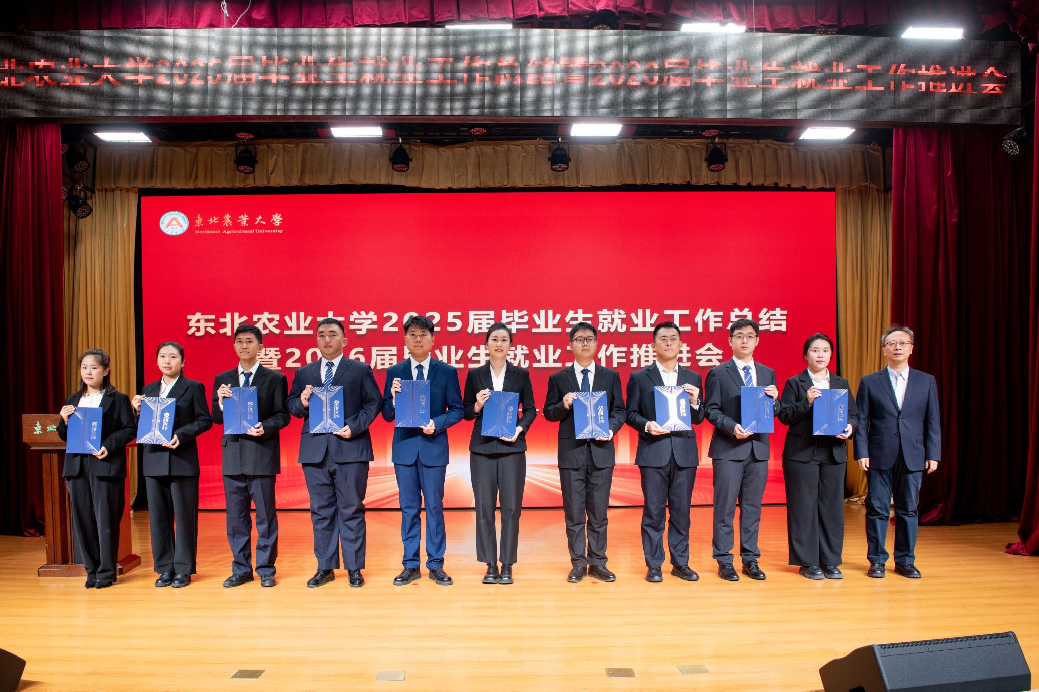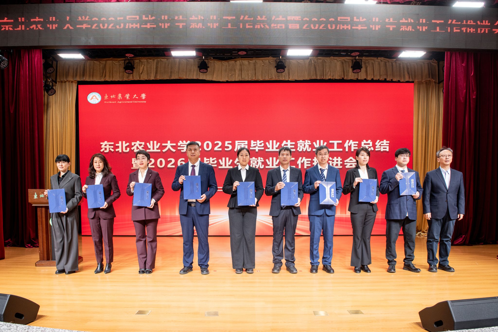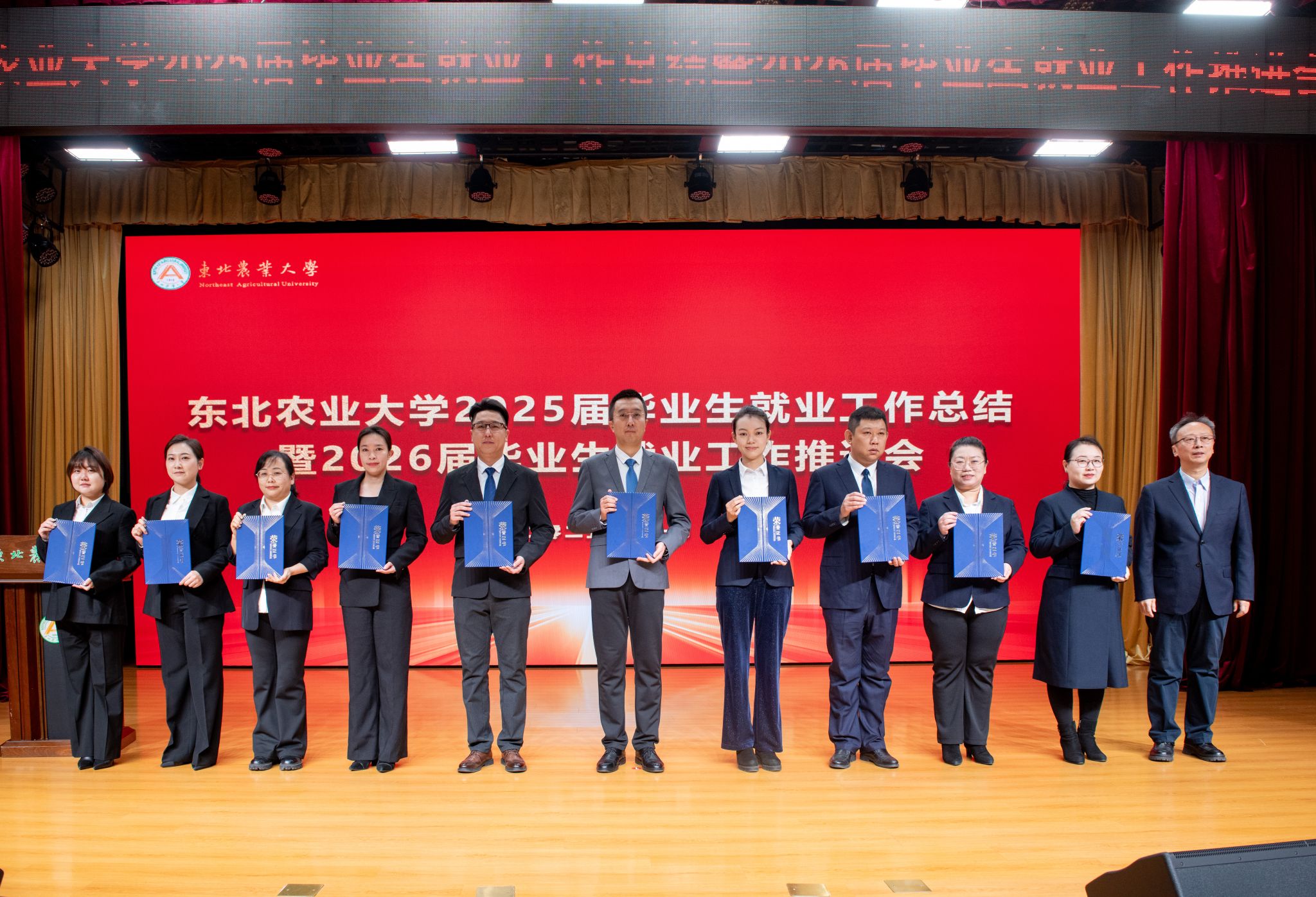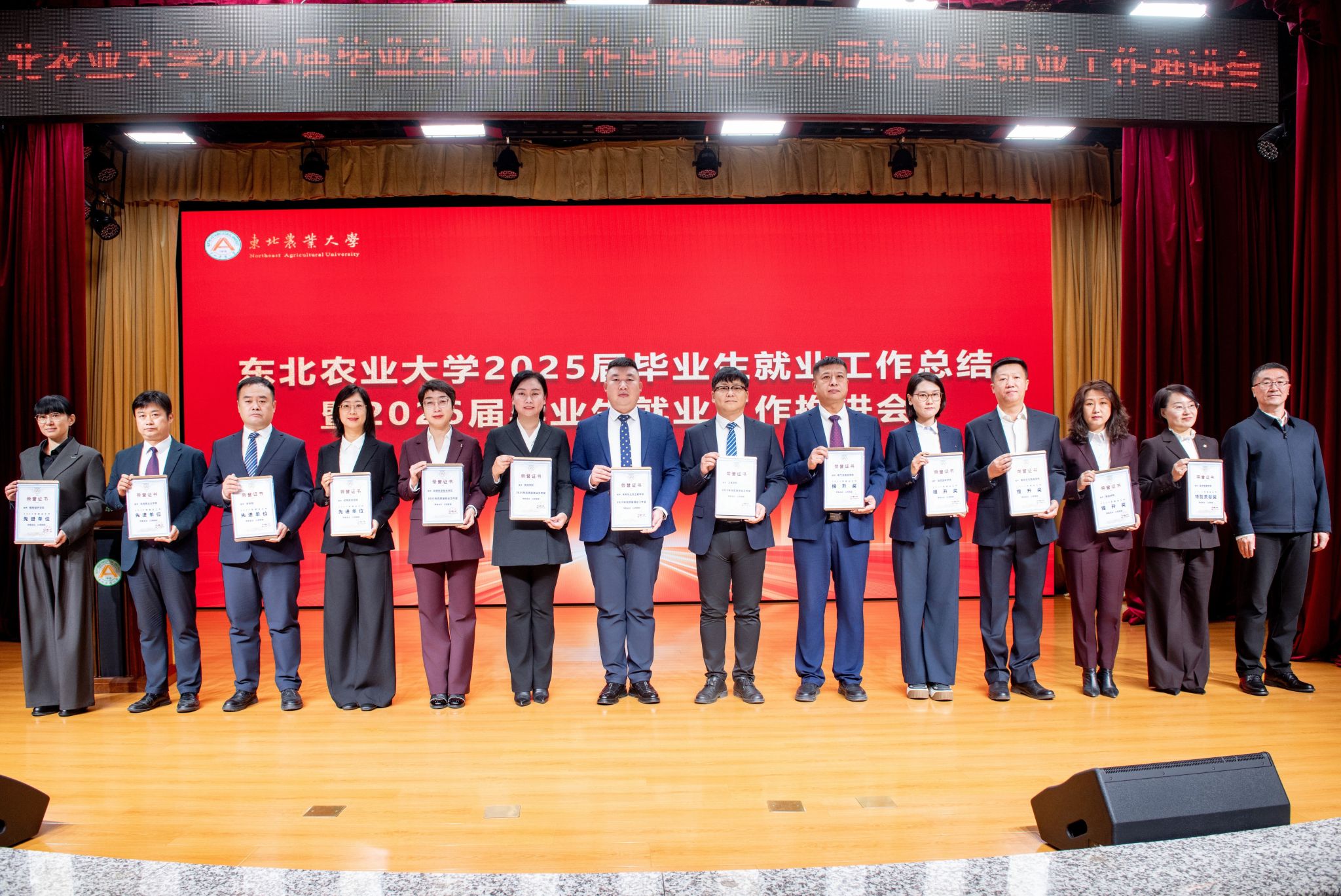 刘忠华宣读《东北农业大学关于表彰2025届毕业生就业工作先进单位的决定》,并为获奖单位颁奖。