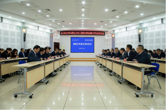 随后,双方举行战略合作协议签约仪式。我校副校长陈庆山、黑龙江农业工程职业学院副校长王新年代表双方签约,付强、刘竹青、焦光纯、张永强见证合作协议签署。