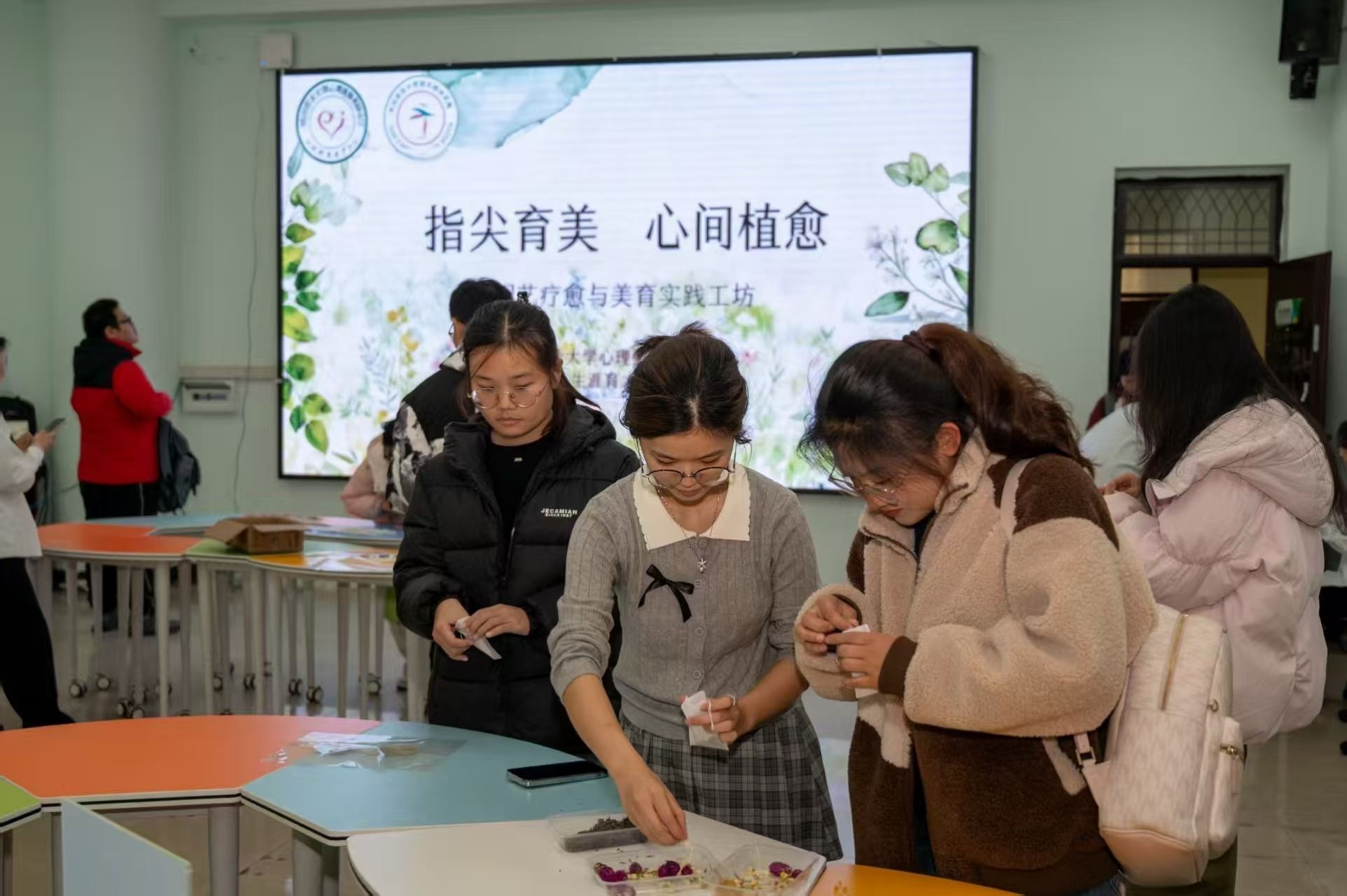 本届心理健康节注重将心理健康教育与耕读文化相结合,联合“耕读知行·生涯育才”辅导员工作室,举办“指尖育美,心间植愈”园艺疗愈与美育实践沉浸式活动,将园艺劳动实践与心理疗愈理念相融合,引导学生亲近自然、调和情志、砥砺意志,于亲手栽种与悉心呵护中体悟生命成长的蓬勃伟力,在实践探索中深味以美育人、以劳润心的深刻意蕴,让新生在轻松愉悦的氛围中筑牢心理防线,加速融入大学新生活。