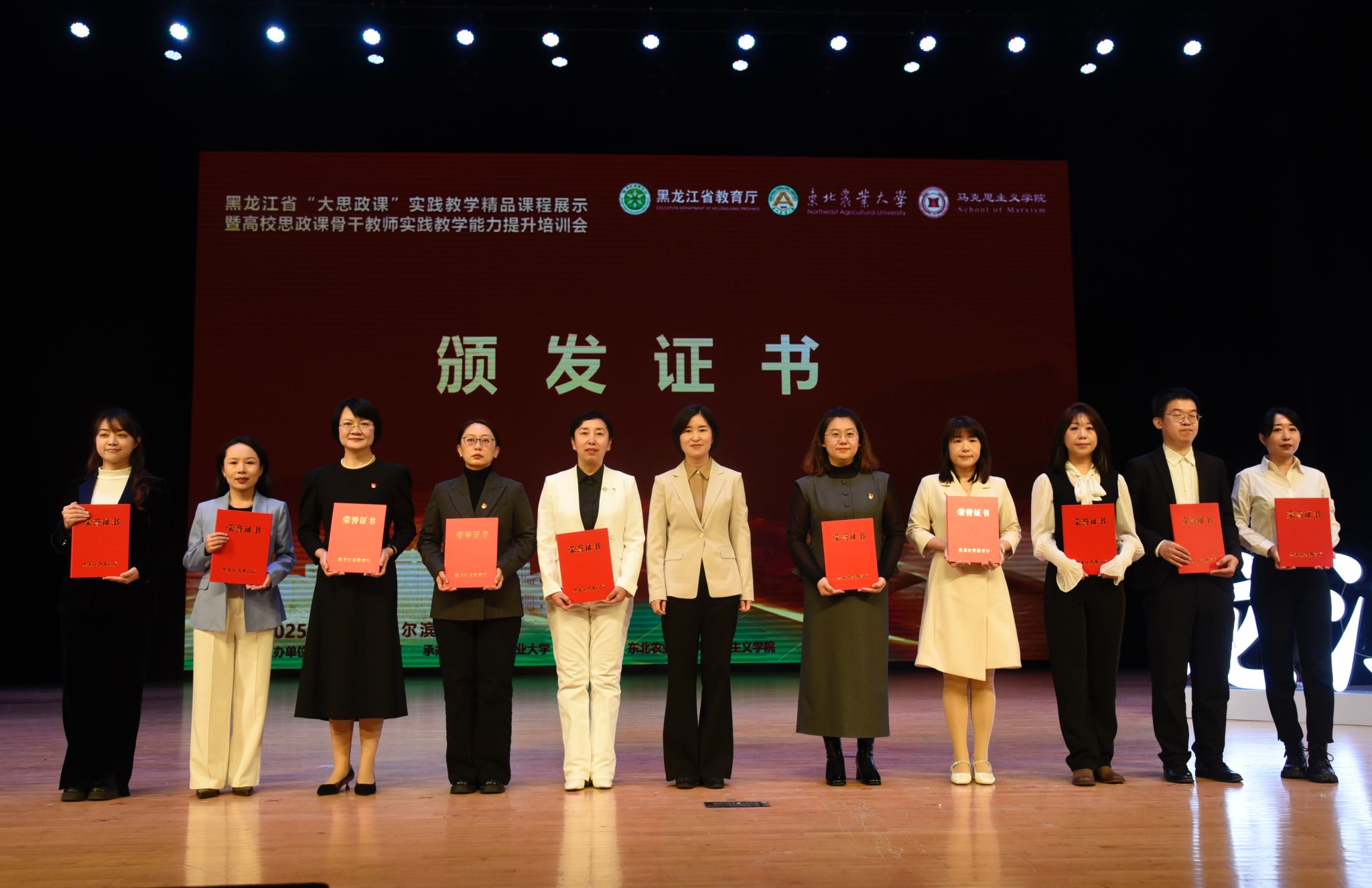会上,程爽为协作共同体高校授牌;省教育厅思政处处长张爽为入选黑龙江省“大思政课”实践教学百节精品课程教师团队代表颁发证书。
