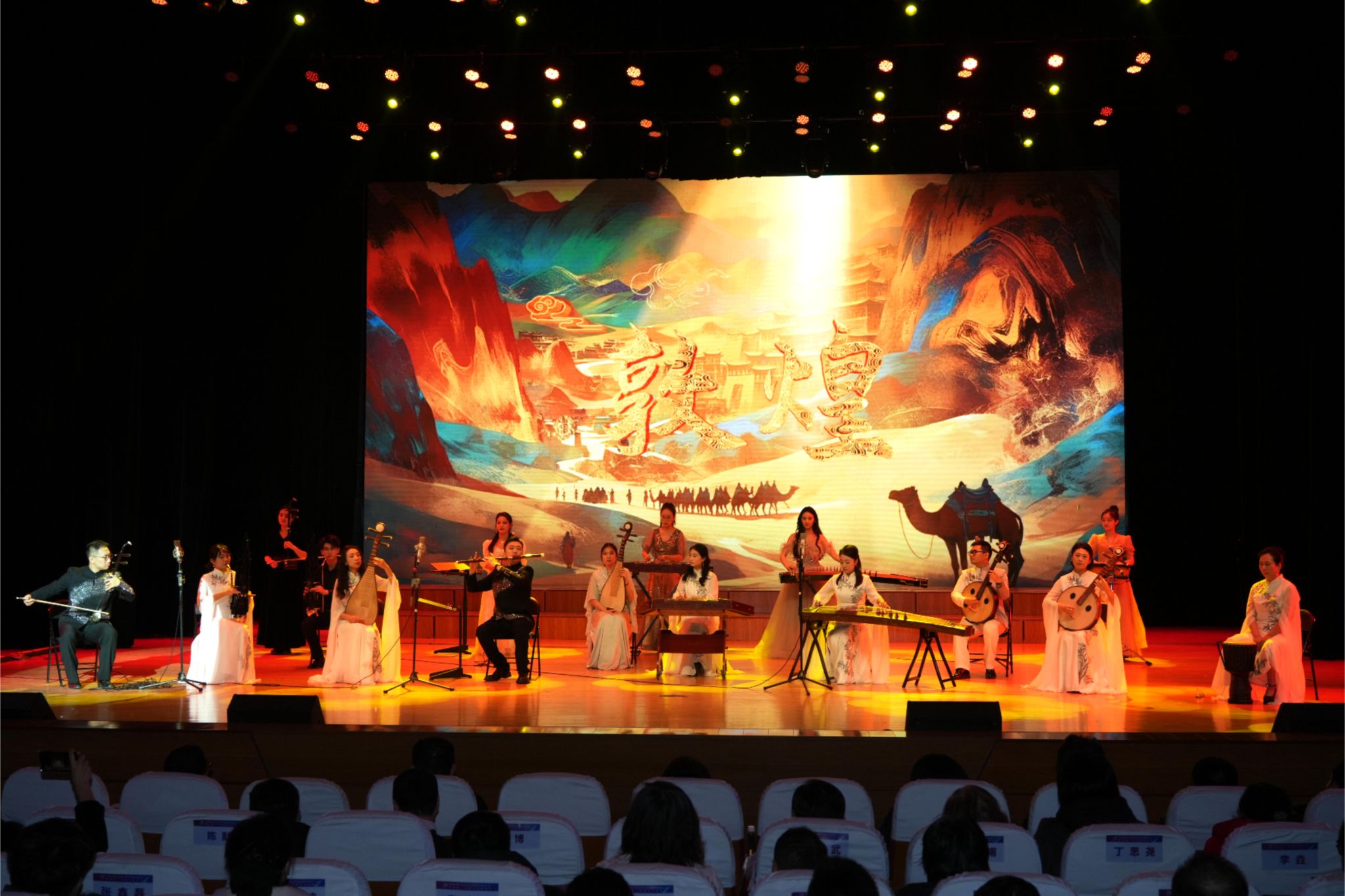 随后,学院建院20周年院庆文艺晚会为现场观众带来了一场视听盛宴,生动展现了学院的育人成果与精神风貌。学校后稷民族管弦乐团首次公演的民族管弦乐《后稷》既蕴含着对中华农耕文明始祖后稷的敬仰,又呼应了学校“强农兴农”办学特色,赢得全场阵阵掌声。歌曲《二十年后再相会》与民乐合奏《敦煌》邀请了学院毕业校友同台演绎,诉说着校友对母校的深情祝福。哈尔滨师范大学音乐学院院长刘臣演唱歌曲《一起走过天长地久》,表达了兄弟院校对艺术学院蓬勃发展的美好祝愿。曾获国家级展演大奖的舞蹈《额颞的鱼皮衣》唯美舒展、意蕴悠长,充分展现了民族文化的独特魅力。歌曲《再一次出发》旋律昂扬向上,传递出学院继往开来、勇攀高峰的奋进姿态。原创音舞诗剧《如愿》融合了舞蹈、歌曲、诗朗诵等艺术形式,创造性运用AI技术展现许振英、王金陵、骆承庠、秦鹏春等东农老一辈科学家、教育家的风采,让现场观众在科技与艺术的交织中,深切感受到东农精神的传承与赓续。最后,全体院领导登台演唱由学院教师原创的歌曲《春华正茂》,以饱满的热情唱响对家园挚爱与期许,展现了学院领导班子与师生同心同德、共谱新篇的凝聚力。
