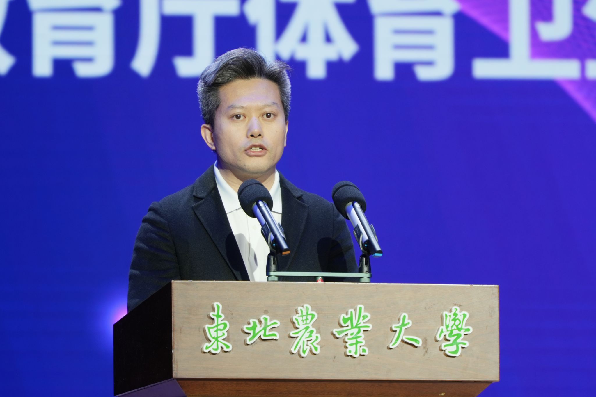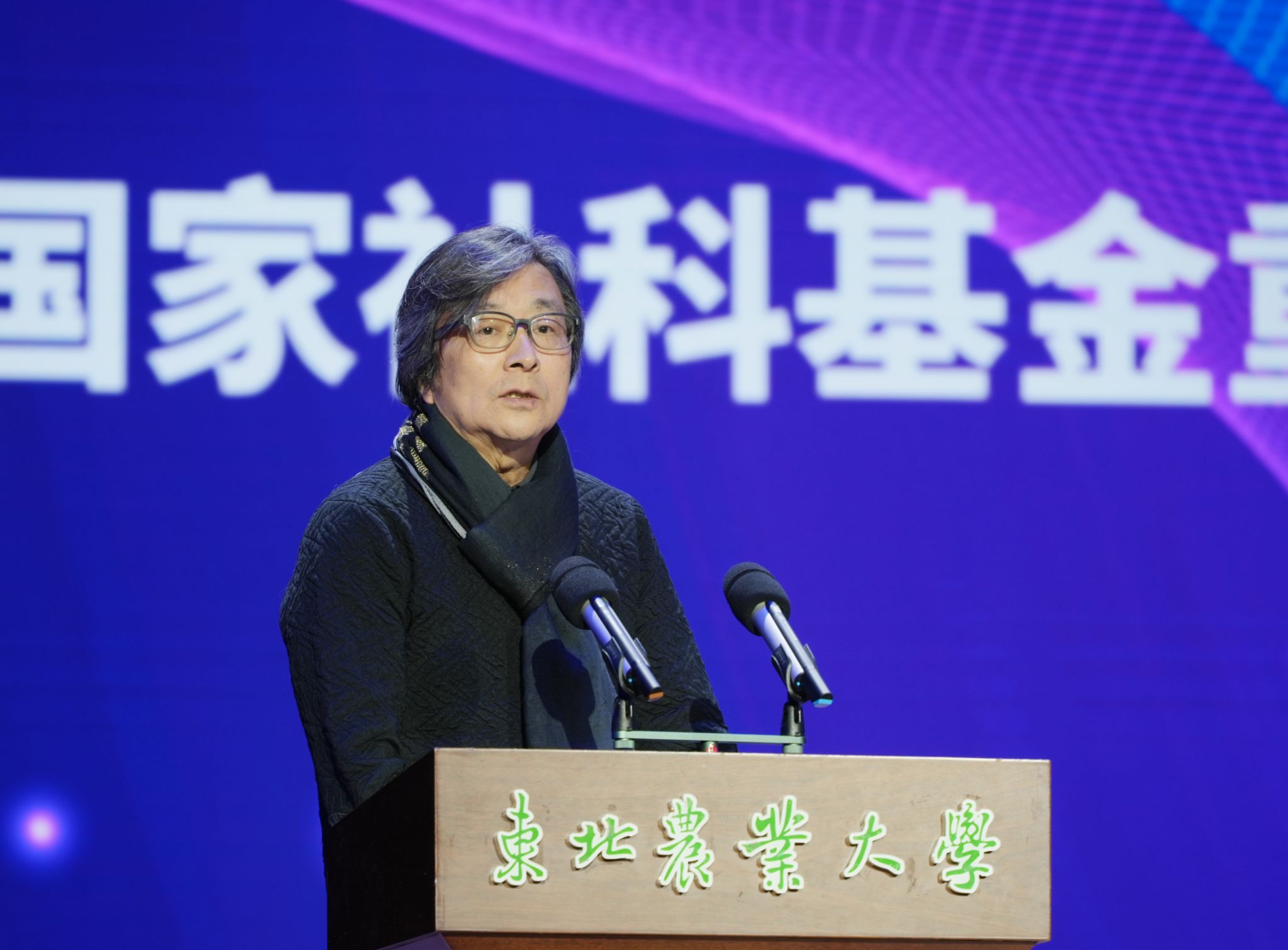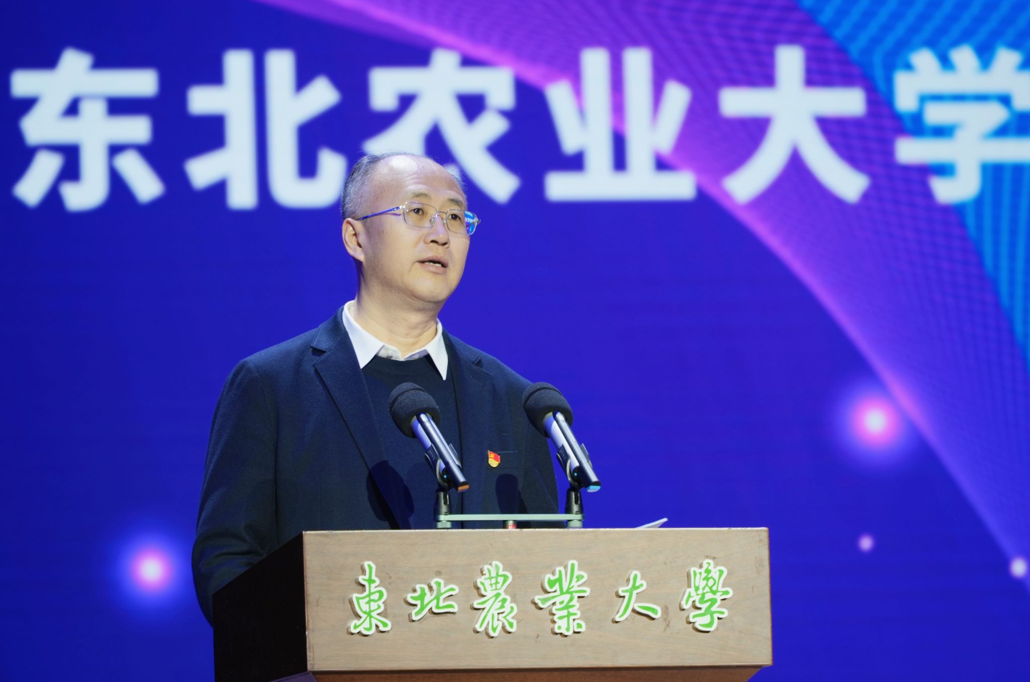 会议在庄严的国歌中拉开帷幕。付强在致辞中回顾了学校近八十载美育积淀与人文传承,肯定了艺术学院二十年来坚守“承农立心 耕美兴邦”初心,走出“农科+艺术”跨界融合特色之路的显著成就。他指出,艺术学院的发展始终与家国共进、与龙江共兴、与东农共荣,为学校高质量发展和黑龙江文化强省、教育强省建设作出了重要贡献。他对艺术学院未来发展提出殷切期望,一是锚定“双一流”建设方向,开创“中国特色、东农风格”的艺术新局。要立足“双一流”建设全局,把艺术学科发展纳入学校高质量发展的总体规划,着力形成具有中国特色、东农风格的艺术体系和教育范式,为世界一流大学“东农梦”筑牢人文根基。二是聚焦高质量育人使命,培育“德艺兼备、艺馨兴农”的艺术新人。要始终把立德树人放在首位,以“农艺融合”为核心深化人才培养模式改革,持续深化与全国兄弟艺术院校、专业艺术团体的交流合作,为学生成长成才搭建更广阔的平台。三是扛起新时代社会担当,打造“赋能振兴、服务人民”的艺术新篇。要主动锚定乡村振兴国家战略,深化产学研融合,持续拓宽校地协同合作,在构建中国自主的艺术知识体系中贡献东农智慧,为助力黑龙江农业强省和文化强省建设作出新的更大贡献。