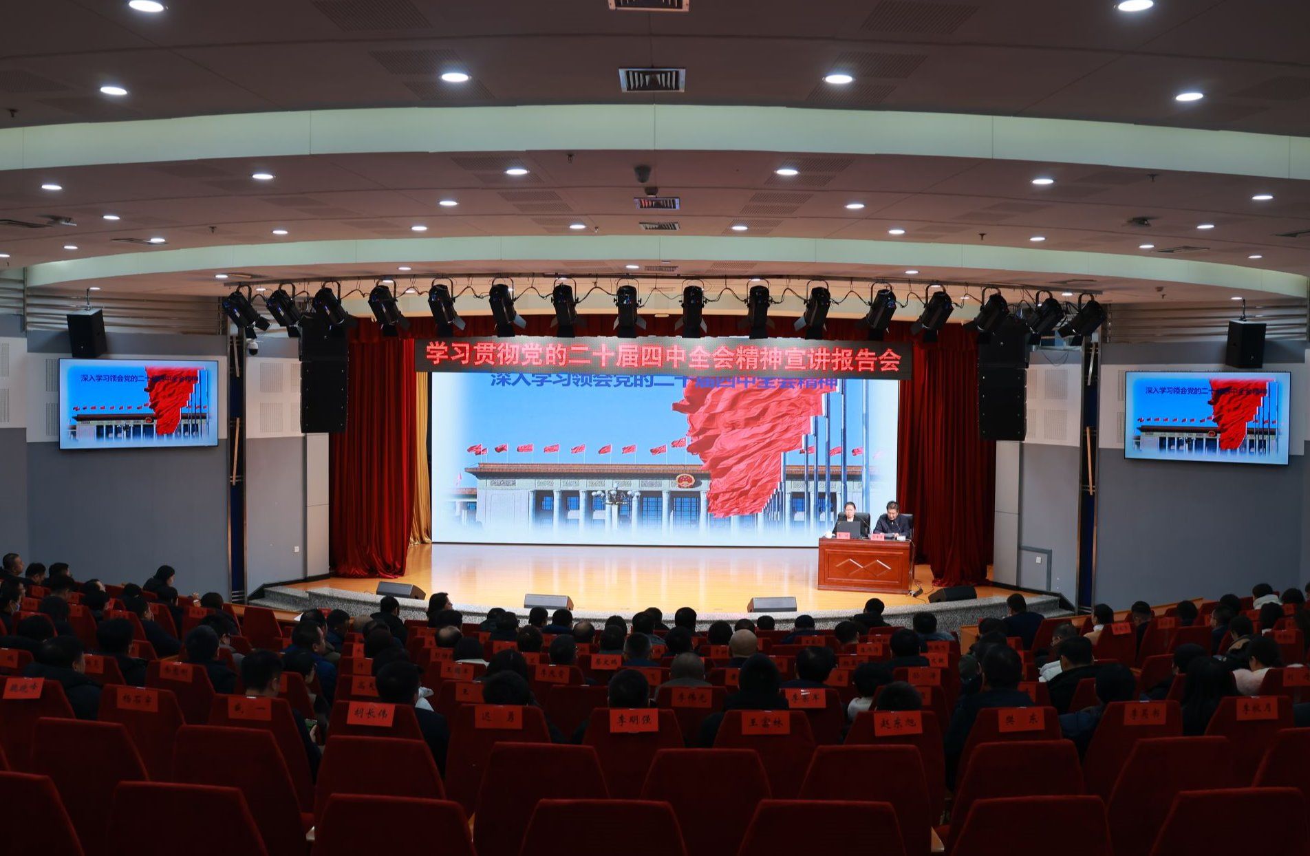 为深入学习贯彻党的二十届四中全会精神,12月11日,学校在图书馆一楼报告厅举办学习贯彻党的二十届四中全会精神宣讲报告会,省委党校李辉教授应邀作专题报告。全体在校校领导,正副处级干部参加会议。会议由校党委副书记贺景平主持。
