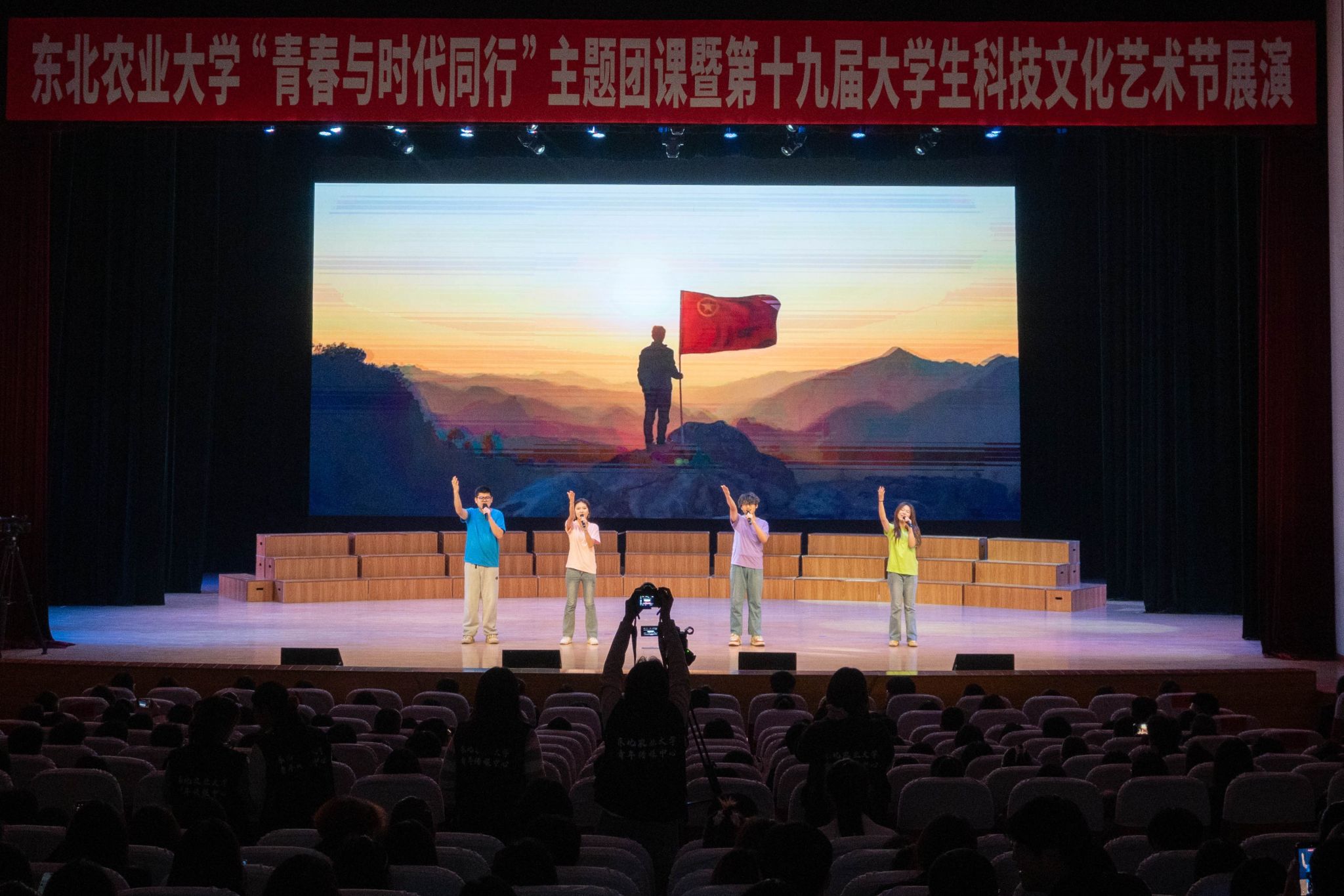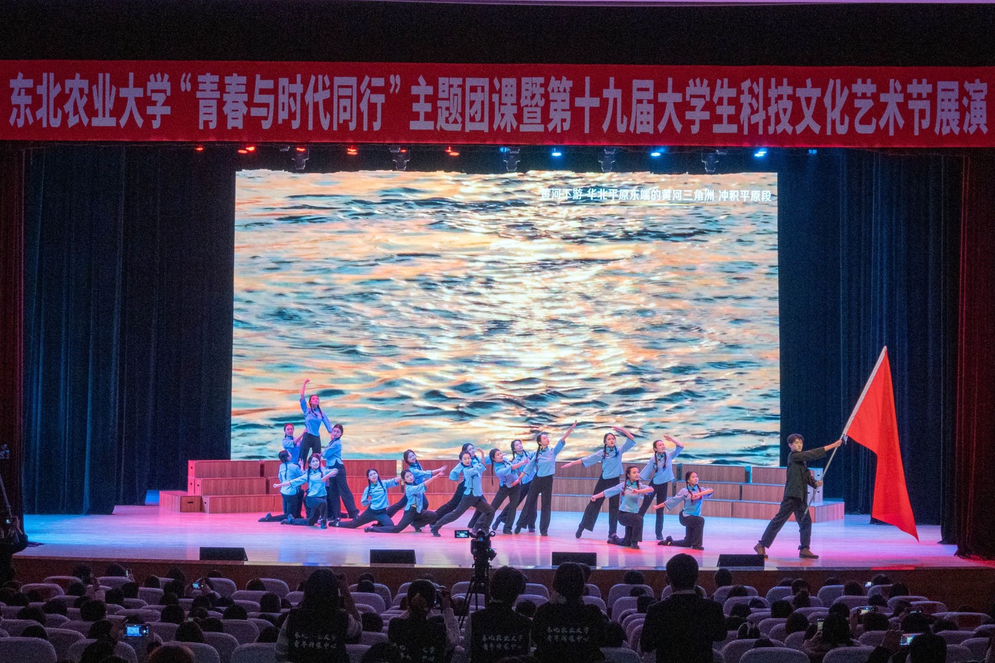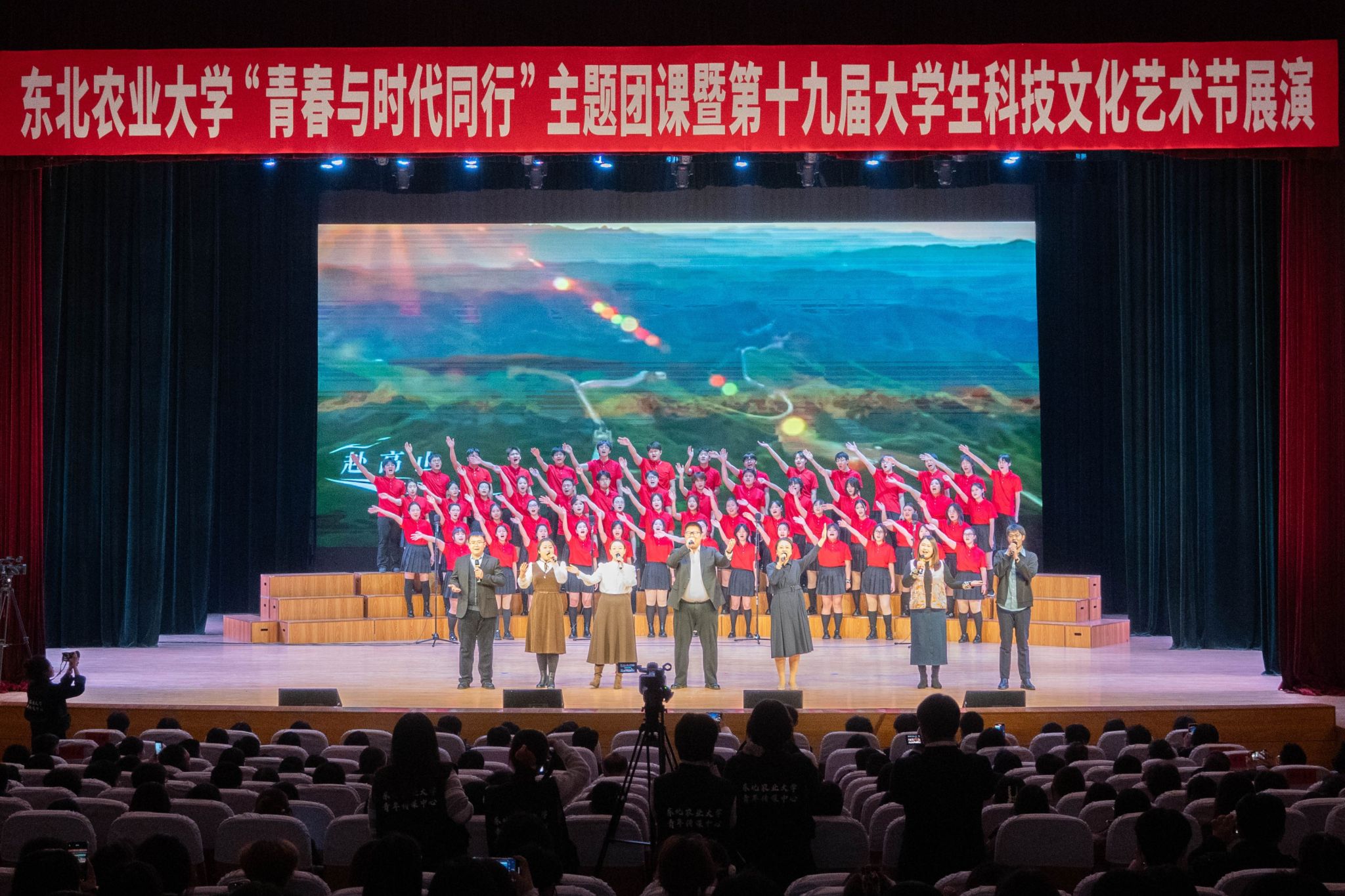 在《有我》的坚定信念中,“平视世界、开创未来的我们”在《跨越山河的奔赴》中,汇聚成奔涌向前的《浪潮》,展现了东农青年传承“薪火”,始终与时代同向、与祖国同行、用青春作答的“新我”担当。最后,全场师生用“我是东农人!我爱东农!我愿意东农好!”的铿锵作答,将整场活动的氛围推向高潮。
