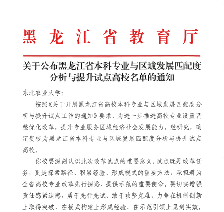 近日,黑龙江省教育厅先后公布了2025年度本科专业与区域发展匹配度分析与提升试点高校以及项目制教育教学改革试点名单,我校在两个重要改革领域均成功入选,充分彰显了学校在深化专业建设改革、服务区域发展战略方面的扎实基础和引领能力。