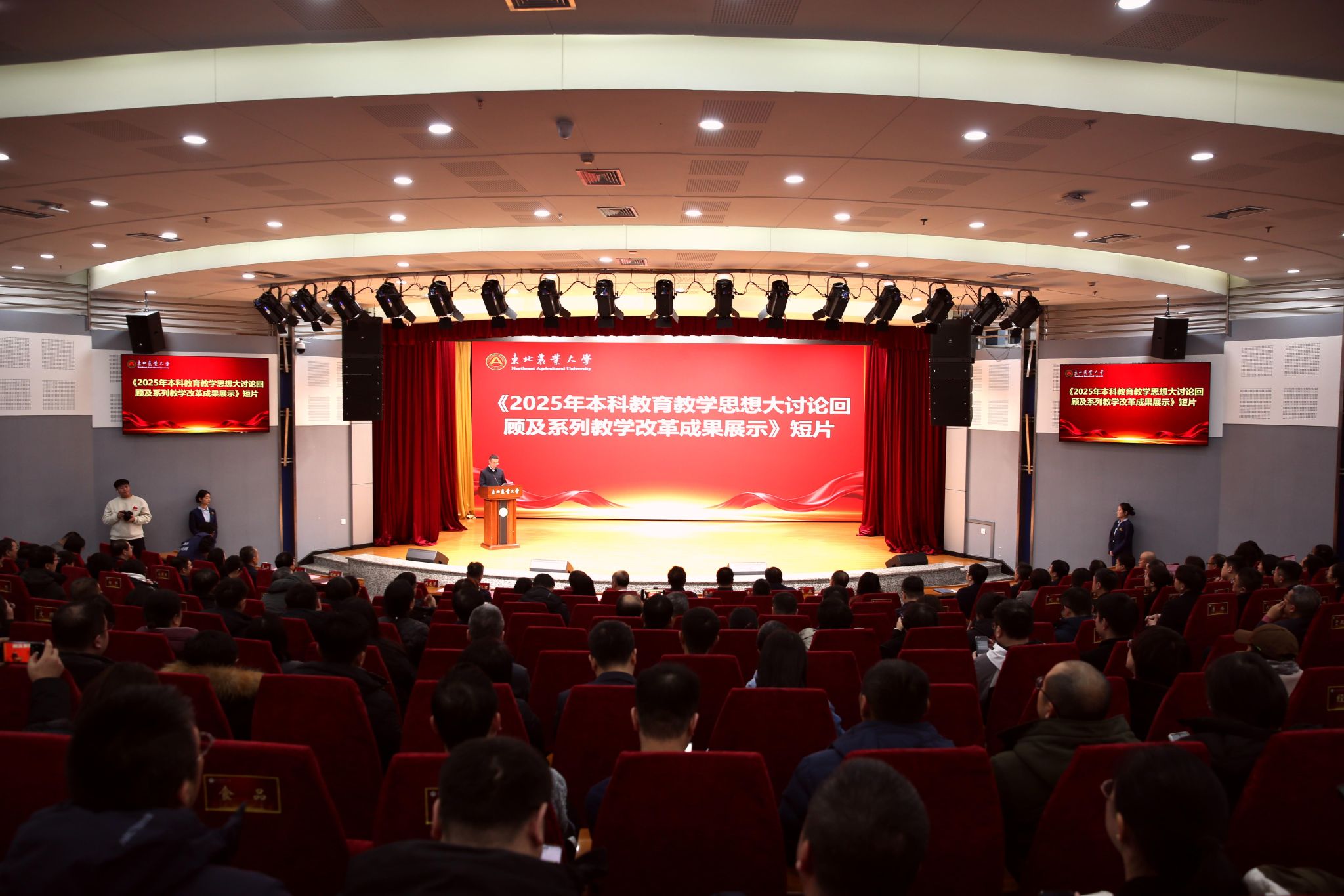 会议播放了《东北农业大学2025年本科教育教学思想大讨论回顾及系列教学改革成果展示》专题视频,生动呈现了各阶段研讨、调研、实践的全景画面,彰显了全校上下共谋教育改革的浓厚氛围与扎实行动。