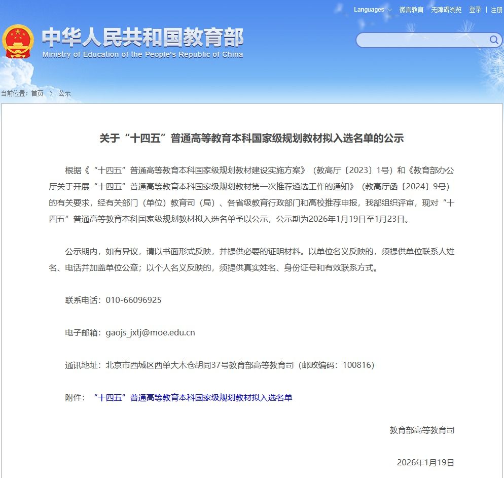 - 我校5部教材入选“十四五”普通高等教育本科国家级规划教材