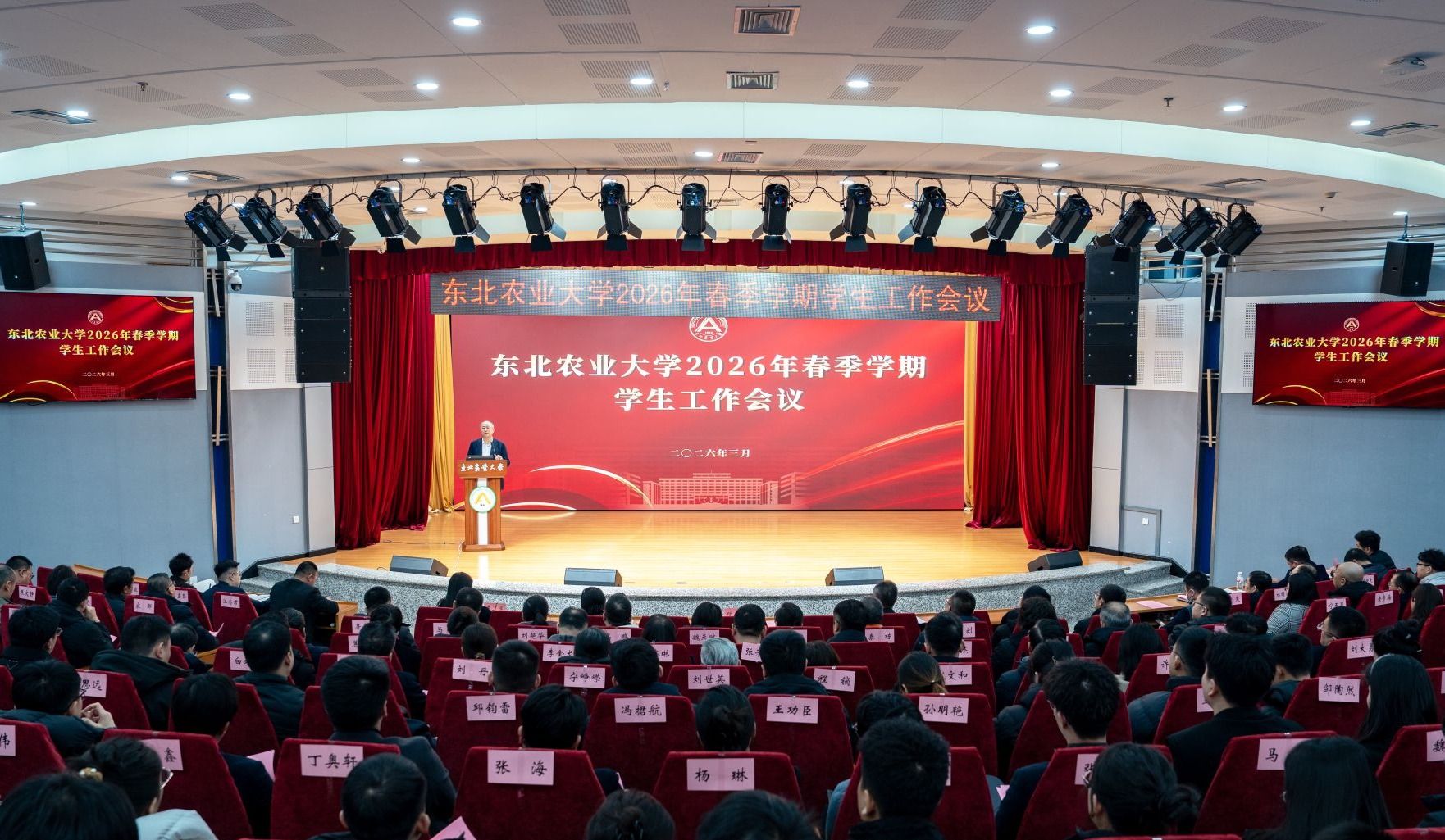 3月10日上午,我校召开2026年春季学期学生工作会议。校党委书记付强出席会议并讲话,学校办公室、组织部、宣传部、学生工作部(学生处、武装部)、保卫处、团委(创新创业中心)、教务处(教师发展中心)、国际交流合作处、招生就业处、后勤管理处、研究生院等部门主要负责同志,各学院党委书记、院长、党委副书记、分管本科和研究生教学副院长、全体辅导员及学生工作部、团委、招生就业处全体工作人员参加会议。会议由校党委副书记、工会主席孟炎主持。