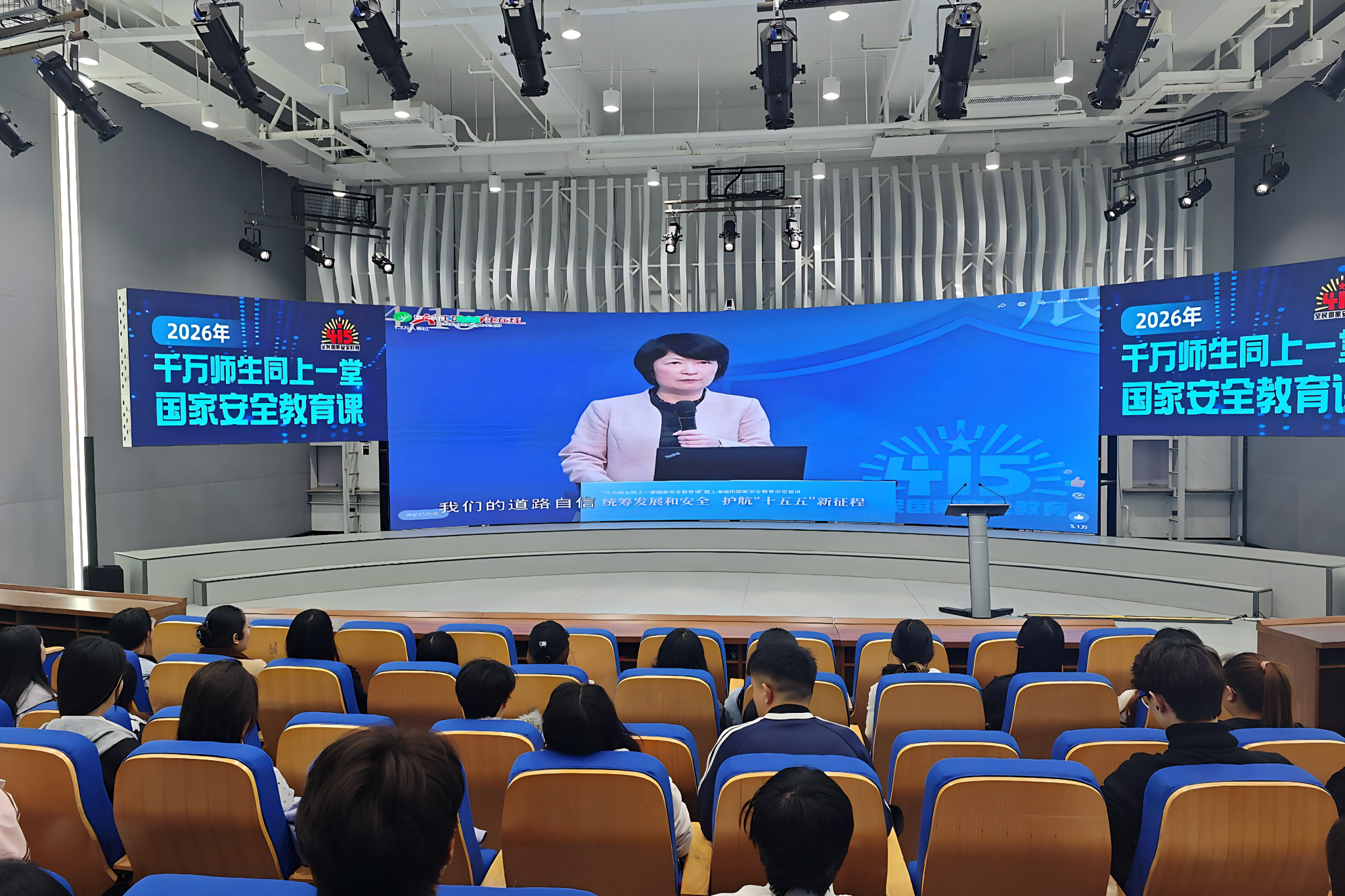 4月14日,由校团委、学生工作部(学生处、武装部)联合举办的第156期校园文化快车暨“增强国家安全意识 共筑反间防谍钢铁长城”全民国家安全教育日专题讲座在音乐厅举行。活动特邀国家安全专家作专题辅导报告。报告立足新时代国家安全工作新形势、新挑战,系统阐释了总体国家安全观的核心内涵与实践要求,深刻剖析了当前国家安全面临的风险挑战与隐蔽战线斗争形势,明确了安全防范重点方向,引导师生严守保密纪律、强化防范意识、提升识别风险、应对风险的能力。