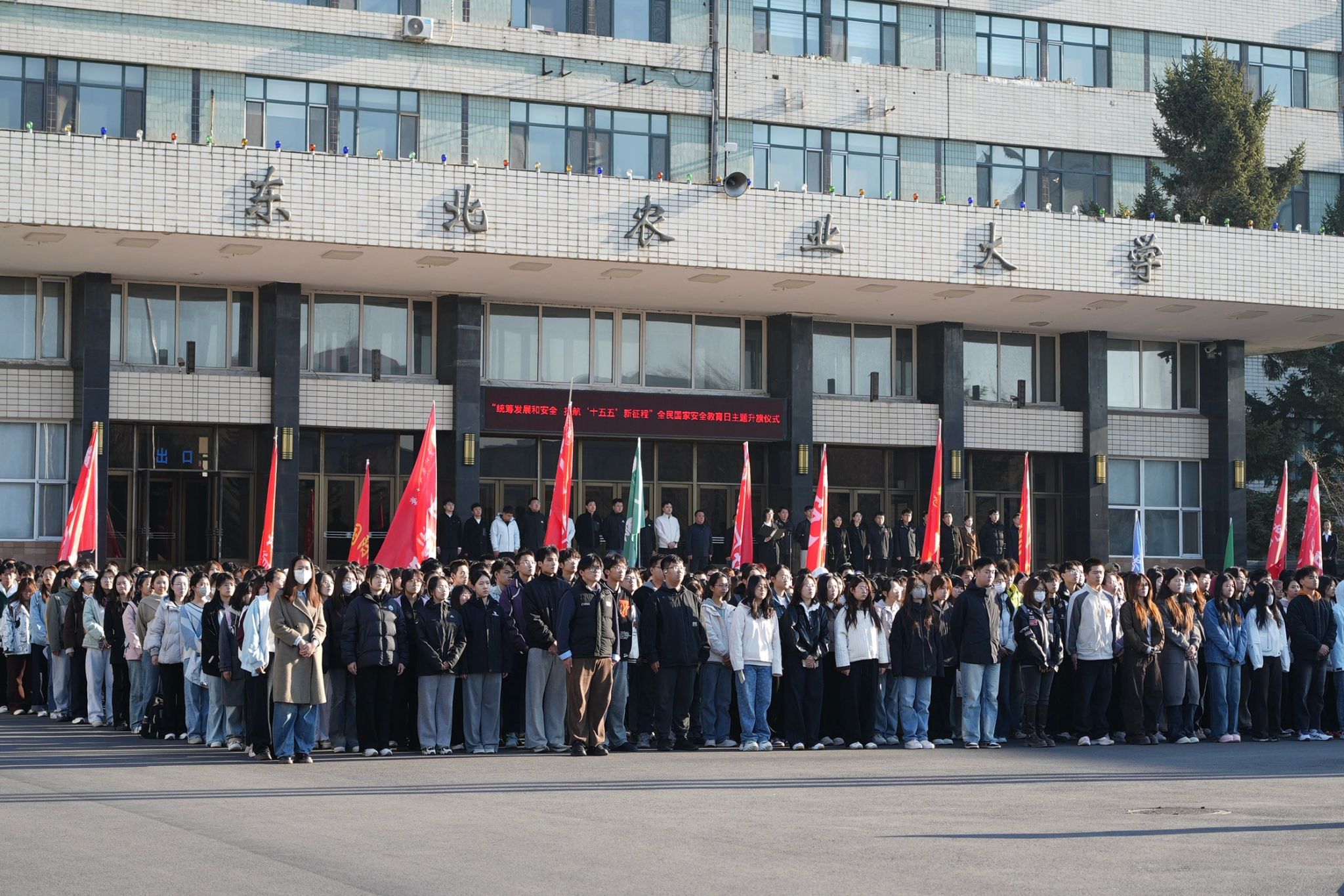 升旗仪式后,汪志君以《筑牢安全防线 勇担强农使命》为题,为现场师生讲授了一堂生动深刻、贴合东农办学特色的国旗下的微思政课,将国家安全教育与农业高校使命紧密结合,让总体国家安全观在师生心中落地生根。他寄语全体青年学子,要坚定理想信念,筑牢思想防线,严守纪律规矩,牢记强农使命,将专业所学与国家农业安全需求紧密结合,在守护粮食安全、助力黑土地保护、服务乡村振兴的实践中锤炼本领,在维护国家安全、建设农业强国的伟大征程中展现东农青年的责任与担当。