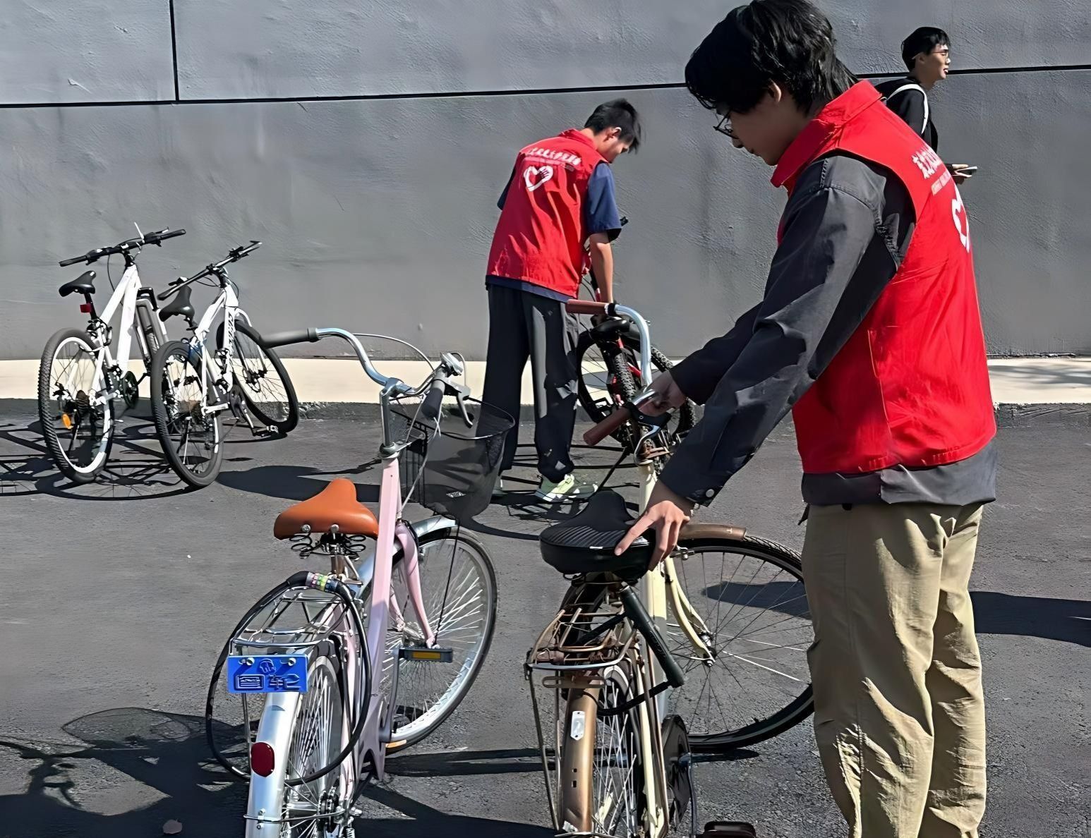 在校内,他们是文明校园的守护者。毕业季里,在后稷园维护秩序,引导文明合影;教学楼旁,规范摆放自行车,保障校园通行安全有序;为近千名新生完成电动车、自行车上牌登记,减少错拿与纠纷;在开学典礼、运动会、毕业典礼等大型活动中,他们提前布场、引导入场,用默默付出保障每一场活动顺利举行。