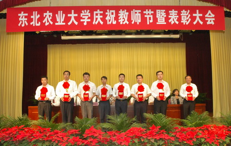 副校长秦智伟宣读了我校《关于表彰第三届校级教学名师的决定》。我校经济管理学院王杜春教授、食品学院孔保华教授、马克思主义学院孙玉娟教授、工程学院李文哲教授、理学院张永忠教授被评为东北农业大学第三届校级教学名师。