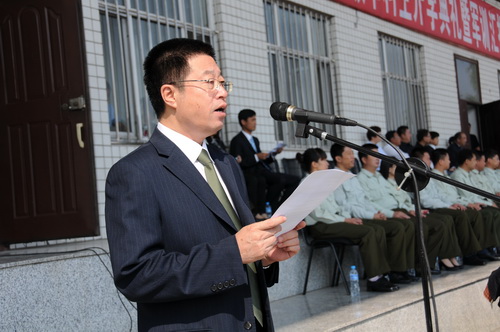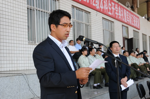 新生军训师政委、校党委副书记胡国良主持典礼