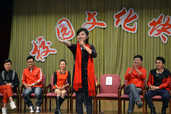 在访谈接近尾声时,两位敬业的主持人常毅、张宣在完成录制节目之后,匆匆感至现场,用他们的真诚与才艺打动了在场的每一位学子。现场的观众用热烈的掌声赞扬这些优秀主持人的付出与坚持,是他们的承担与勇敢才有了黑土地上丰富的文娱生活。