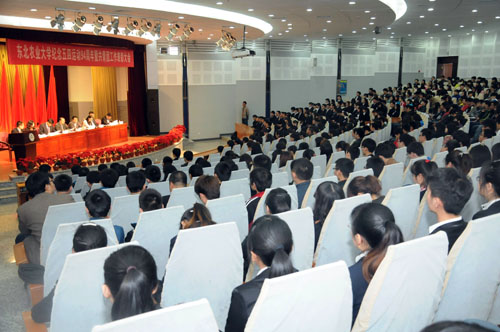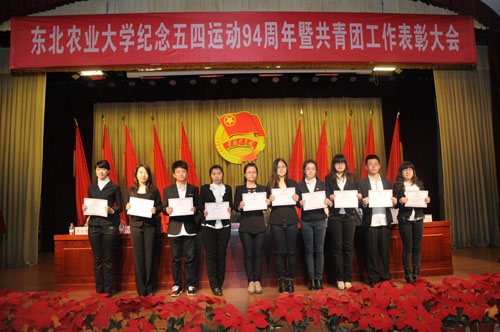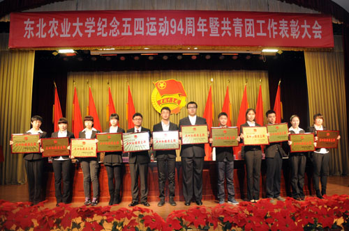 大会在庄严的国歌中正式开始。校党委常委、组织部部长陈延良首先宣读了《关于表彰我校在第八届“挑战杯”大学生创业计划竞赛中获奖个人和优秀组织单位的决定》,宣传部部长宋跃芬宣读了《关于表彰2012—2013年度东北农业大学“先进学生会”、“十佳社团”的决定》;学生工作处处长徐国峰宣读了《关于表彰2012-2013年度五四红旗团支部、先进团支部、优秀共青团干部、优秀共青团员的决定》;校团委书记于兴业宣读了《关于表彰2012—2013年度社会实践积极分子、优秀青年志愿者的决定》。