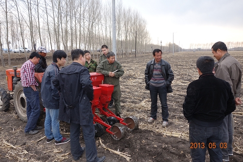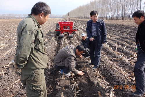 试播调试后,望奎县农业副县长胡忠伟、农业局局长宋加平一致表示,这款免耕播种机十分实用,能够作为大型农机合作社播种机的很好补充。特别是在今年的气候条件下,望奎农业示范区有几千亩地块需要原垄卡种,在大型播种机无法完成的情况下,专家带来的机具如及时雨一般,解决了播种的燃眉之急,恳请专家能够在最短的时间内再为望奎赶制几台适合大垄双行栽培模式的播种机,以便更好地抢抓农时,保证春播。