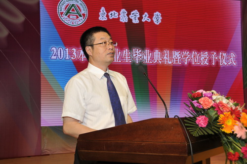 副校长秦智伟宣读《东北农业大学2013届本科毕业生名单、学士学位授予名单》《新疆阿勒泰地区培训学员结业名单》