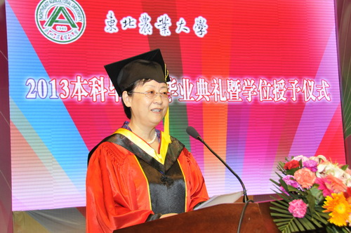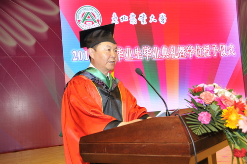 校党委书记、校长徐梅代表学校向完成学业的同学们表示祝贺,向辛勤的教职员工们表示感谢,向家长们表达问候和感激之情。她说:“此时此刻,我想再和你们唠叨几句贴心的话。”她希望同学们在今后的旅程中志存高远,脚踏实地,努力在实现中华民族伟大复兴的实践中放飞自己的青春梦想;她希望同学们继续发扬勤奋、求实、奉献、创新的东农校风,在未来的日子里成为一个勤奋的人;她希望同学们对自己负责、对家庭负责、对社会负责,少一些傲气和浮躁,多一分自强和坚毅,多一分眷顾,多一分关爱,努力承担起报效祖国、服务社会、造福人民的责任。她说东农永远是毕业生的心灵港湾,是一辈子的精神家园,她会守在这片沃土等待同学们收获成功收获幸福的消息。热烈的掌声又一次回响在会场中,典礼落下帷幕,同学们带着母校的嘱托,怀揣着梦想,肩负着责任踏上新的征程。