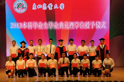 典礼上,副校长秦智伟宣读了《东北农业大学2013届本科毕业生名单、学士学位授予名单》、《新疆阿勒泰地区培训学员结业名单》。校党委副书记郭翔宇宣读了黑龙江省教育厅《关于表彰2013年黑龙江省优秀毕业生的通知》以及《关于表彰新疆阿勒泰地区优秀学员的决定》。 与会领导为毕业生代表颁发了毕业证书、结业证书,为省级优秀毕业生代表、新疆阿勒泰地区优秀学员代表颁发了荣誉证书。