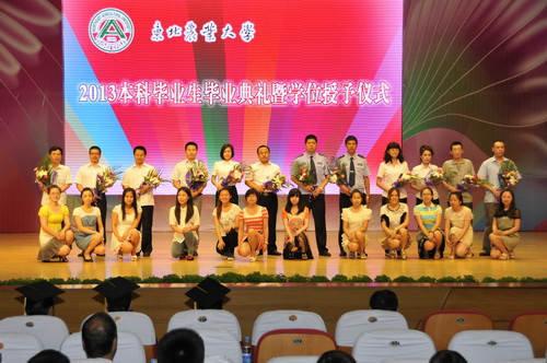 我校2013届本科毕业生毕业典礼暨学位授予仪式拉开帷幕。校党委书记、校长徐梅,校党委副书记胡国良、郭翔宇,副校长秦智伟、张长利、刘荣、郑秋鹛、胡宝忠,校纪委书记孙立军,校工会主席王泽方出席典礼。典礼由校党委副书记胡国良主持。