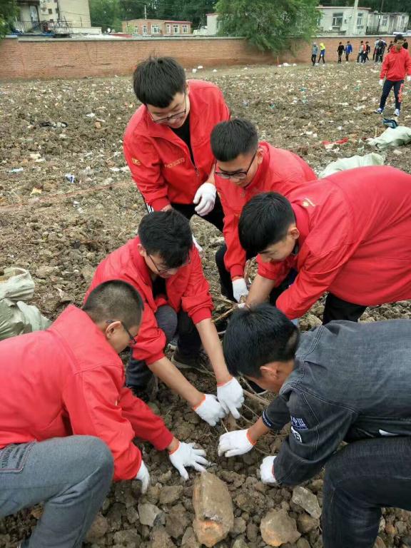写在前面:位于学校化工路大门入口右侧的空地区域,按照学校整体规划,该区域将打造成农学、园艺园林等学院相关专业教学实践基地,同时将修建百余个停车泊位,缓解家属楼周边停车压力。由于该区域常年荒草连连,植被较少、风沙较大,土下埋着大量的塑料、铁丝以及砖石垃圾。为保证基地建设的后续工程和花木移栽种植期,连日来,后勤处、基建处等多部门联动,广大干部教师积极投身基地建设,利用假期或休息日清捡荒地垃圾。近日,学生工作处在全校学生中开展了“美丽校园·行动2017”实践教育活动,动员广大学生积极投身学校环境建设,师生联动为学校发展建功立业。