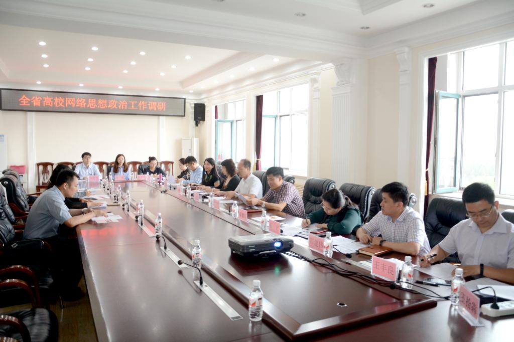6月21日上午,省委宣传部教体卫处处长牟喜颖一行来我校调研网络思想政治工作。校党委副书记马宏坤、学生工作处处长徐国峰、校团委书记于兴业、经济管理学院保险系主任李丹、校党委组织部副部长翟继军、校党委宣传部副部长石岩、艺术学院党委副书记宫建伟、马克思主义学院副院长许静波及辅导员和学生代表参加调研会。会议由党委宣传统战部部长宋跃芬主持。