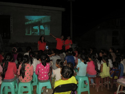 打夯村由于地势较高、农作物产出少、交通不便、村民生活条件差、文化水平落后,务农收入无法维持家庭的正常生活。为增加收入,改善生活,许多父母不得以外出务工,导致村内有留守儿童近百名。此次志愿者们通过筑梦观影的形式,开展“心幕象牙塔”、“一城一名悦中国”等活动,让孩子们从多个角度来了解大山外面的世界,从多个渠道去认识大学的样子,此次活动还构建起了各省市高校志愿者与贫困地区留守儿童之间的桥梁,外省市志愿者们透过荧屏与打夯村留守儿童建立起点对面的联系网。帮助贫困地区青少年儿童筑造一个绮丽的大学梦。