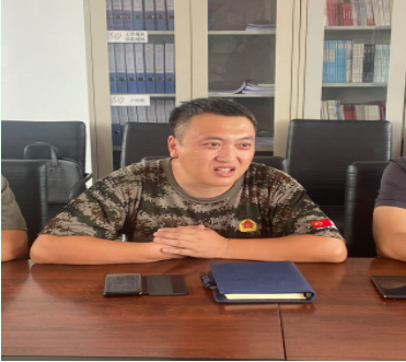 ↑曹海峰和郭明军汇报工作情况和驻村心得体会