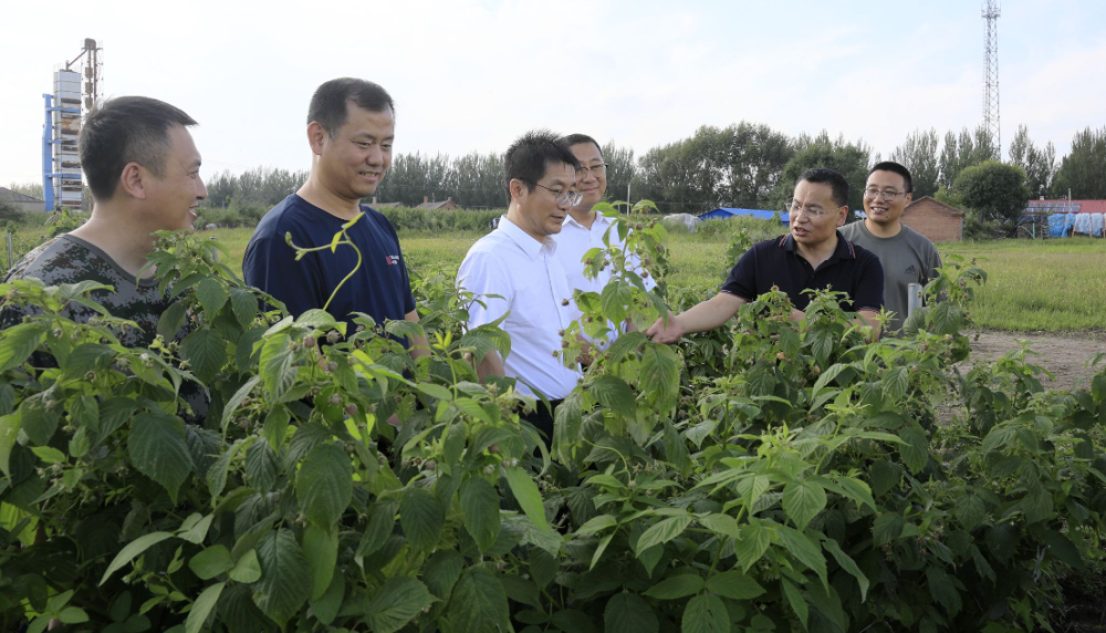 ↑调研树莓集中种植基地