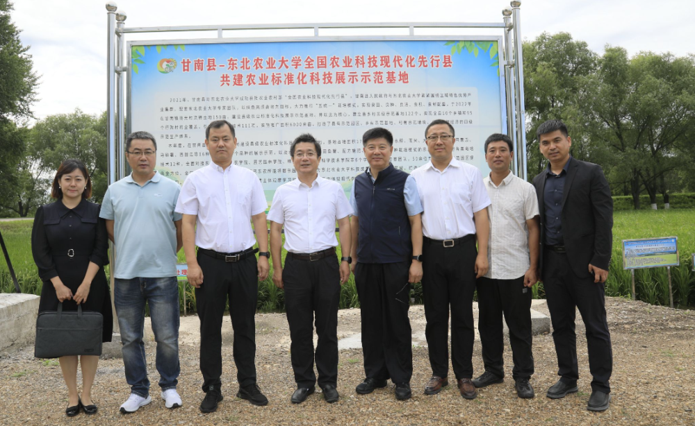 ↑调研甘南县与东北农业大学共建农业标准化科技展示示范基地