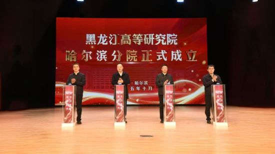 在与会代表的共同见证下,王震、刘广宇、刘竹青、李均共同为黑龙江高等研究院哈尔滨分院揭牌,标志着哈尔滨分院正式启动运行。