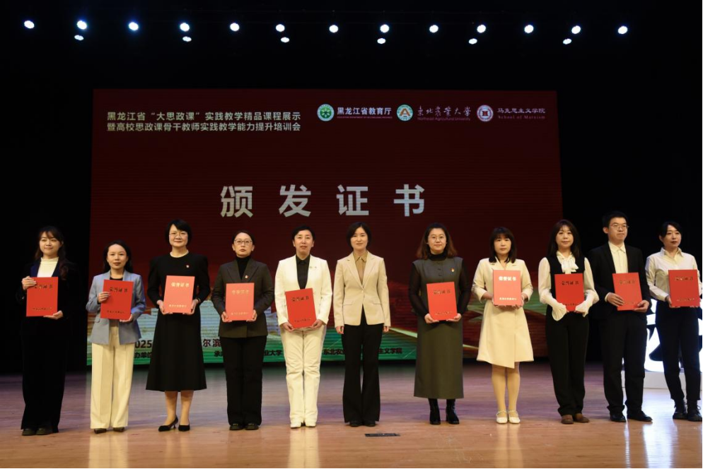 会上,程爽为协作共同体高校授牌;省教育厅思政处处长张爽为入选黑龙江省“大思政课”实践教学百节精品课程教师团队代表颁发证书。