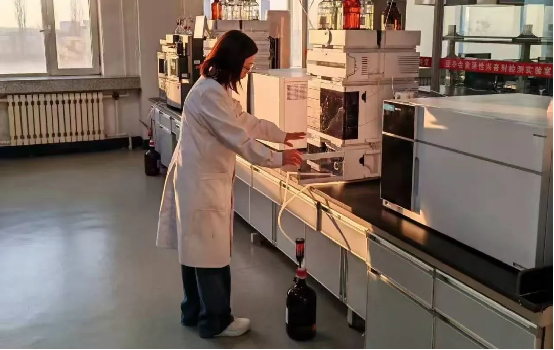 工作人员对抽样产品进行科学监测 图片来源:黑龙江省农业农村厅