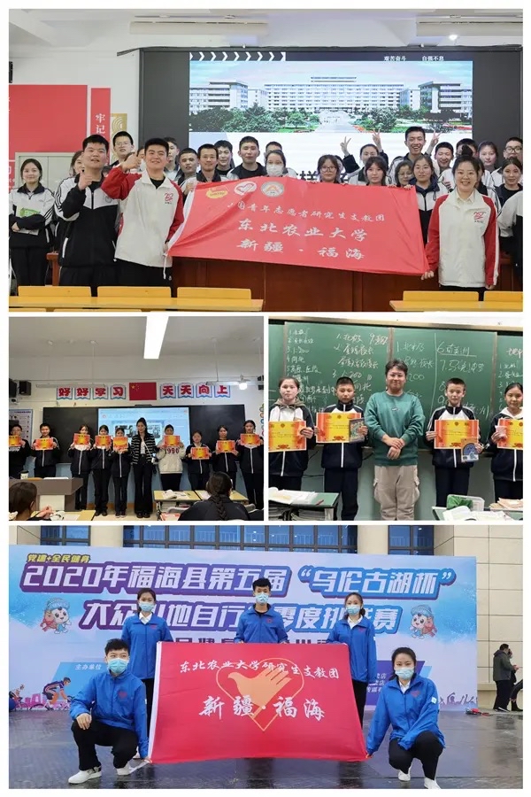 10年来,10批队伍、44位东农青年,循着先辈的足迹,相继进驻福海县小学、初中、高中各个学段,把青春的汗水洒在边疆的校园里。他们始终牢记“传道授业解惑”的初心,主动扛起当地教学中最吃紧的担子,哪里有需要,哪里就有他们的身影。十年来,队员们累计承担了110多个班级的各学科教学任务,服务学生超过8400人次,每个人每周的课时都稳定在12节以上,不少队员还主动兼任教研组组长、阅卷组组长,用严谨的态度守住教学质量的底线。