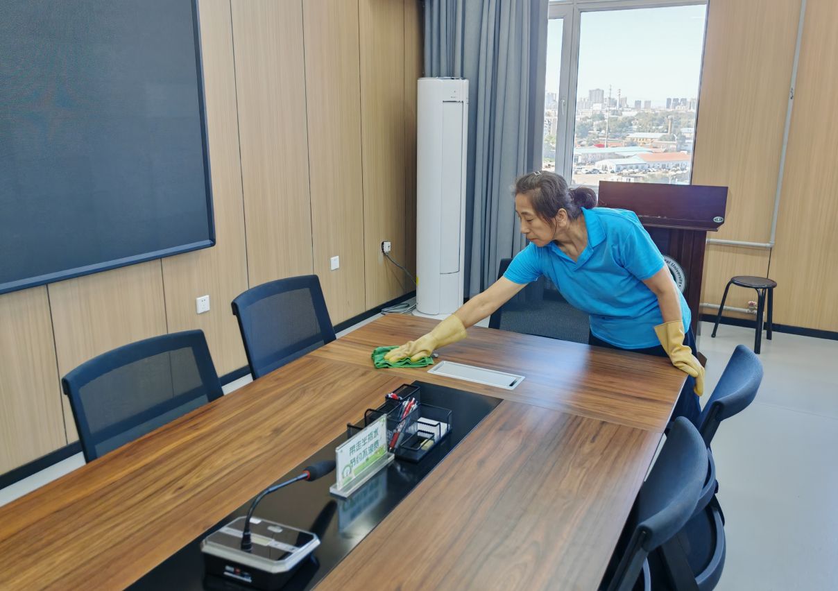 9月6日,校园物业管理中心组织第三方物业公司,为成栋楼的教师办公室进行除尘保洁工作,擦拭门窗桌椅,清扫灰尘死角,保洁人员用辛勤劳动致敬教师们的辛苦耕耘,为教师们科研工作场所的整洁明亮做好保障工作。
