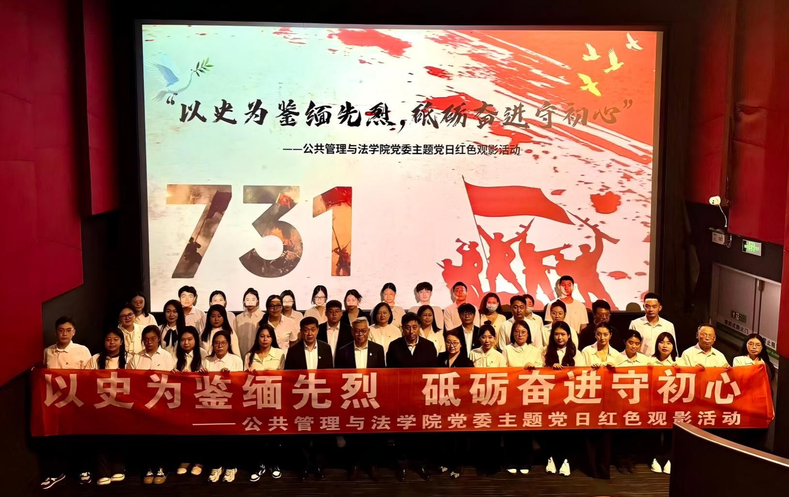 为响应学校“纪念中国人民抗日战争暨世界反法西斯战争胜利80周年影片展映展播暨‘东农红色电影周’”活动号召,9月29日,公共管理与法学院党委以“以史为鉴缅先烈,砥砺奋进守初心”为主题,组织开展红色观影主题党日活动,40余名党员教师与学生共同参与。