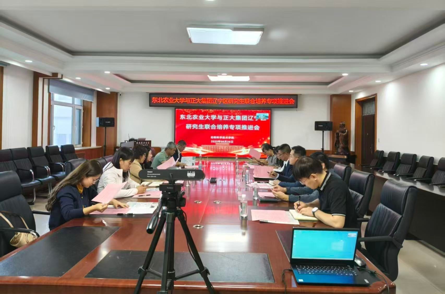 为深化校企合作,创新研究生培养模式,9月26日下午,由我校动物科学技术学院牵头举办,动物医学学院、食品学院、经济管理学院共同参与,与正大集团辽宁区联合开展的“深化产教融合·共促培养实效”研究生联合培养专项推进会在动科楼218召开。动物科学技术学院院长董娜、副院长张慧,动医学院、经管学院、食品学院及动科学院的部分教师代表参加会议,正大集团中国区副董事长兼辽宁区总裁陈强、总裁助理孙建三等企业高管通过线上线下方式出席会议。会议由董娜主持。