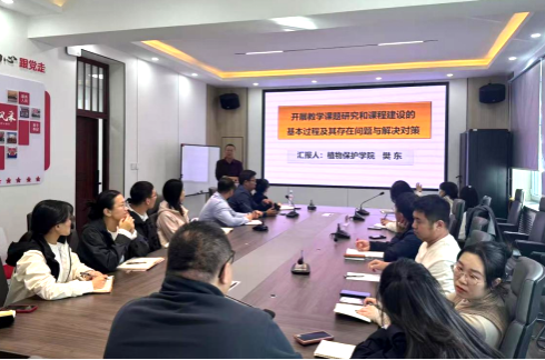 10月10日下午,植物保护学院在植保楼327会议室举办教学研究与成果凝练专题培训会。培训会由植物保护学院院长樊东主讲,学院全体青年教师参会。会议由学院教学院长李秋月主持。