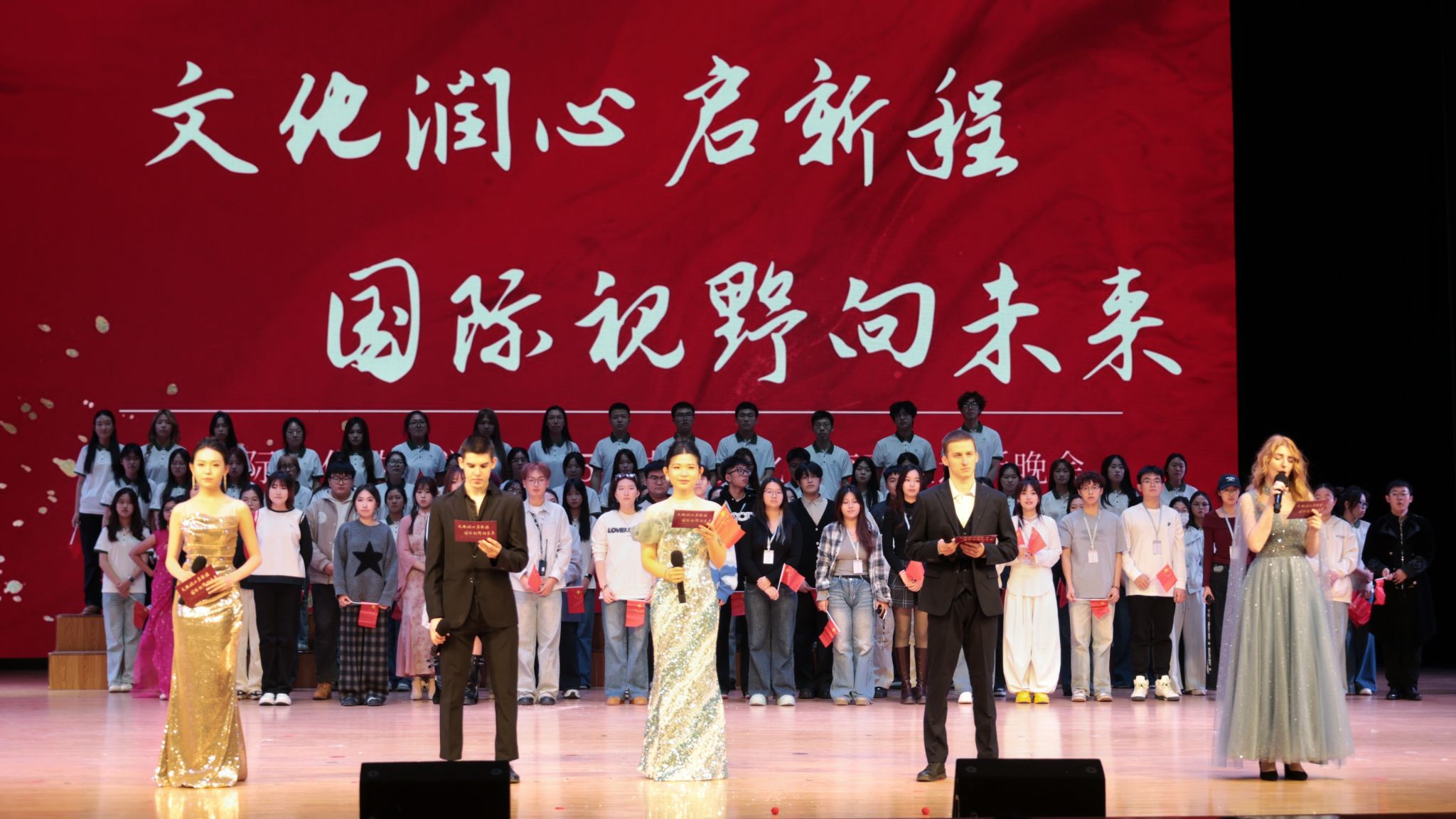 为深入贯彻落实立德树人根本任务,促进中外文化交流互鉴,助力2025级新生更好融入大学生活,11月11日,国际文化教育学院主办的“逐梦国际,‘新’程共赴”——2025年中外文化交流节暨迎新晚会在音乐厅剧场隆重举行。学校相关职能部门负责人、学院领导班子成员、教师代表、各国留学生及2025级全体中外新生参加活动。