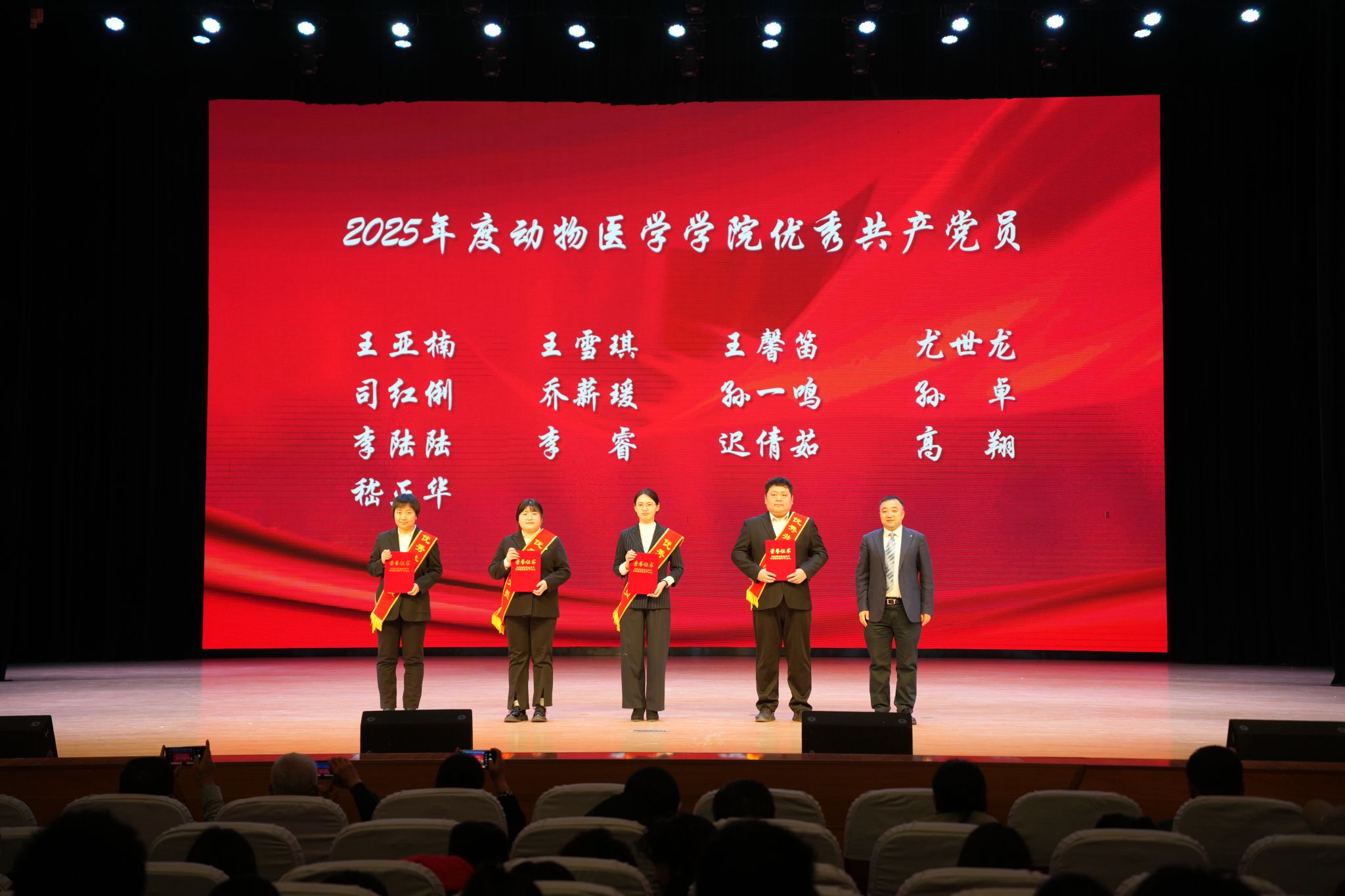 学院党委书记张春燕在讲话中向受到表彰的先进集体和个人致以热烈祝贺,向坚守信仰的“光荣在党30年”老党员、深耕杏坛的“光荣从教30年”教师及全体师生表示衷心感谢。她强调,全院师生要以先进为榜样,做信念坚定的“排头兵”,做服务学生的“暖心人”,做共建共享的“实干家”。她号召全院师生不忘初心、牢记使命,踔厉奋发、勇毅前行,奋力谱写学院高质量发展新篇章,为培养更多担当民族复兴大任的时代新人、推动兽医事业蓬勃发展作出更大贡献。