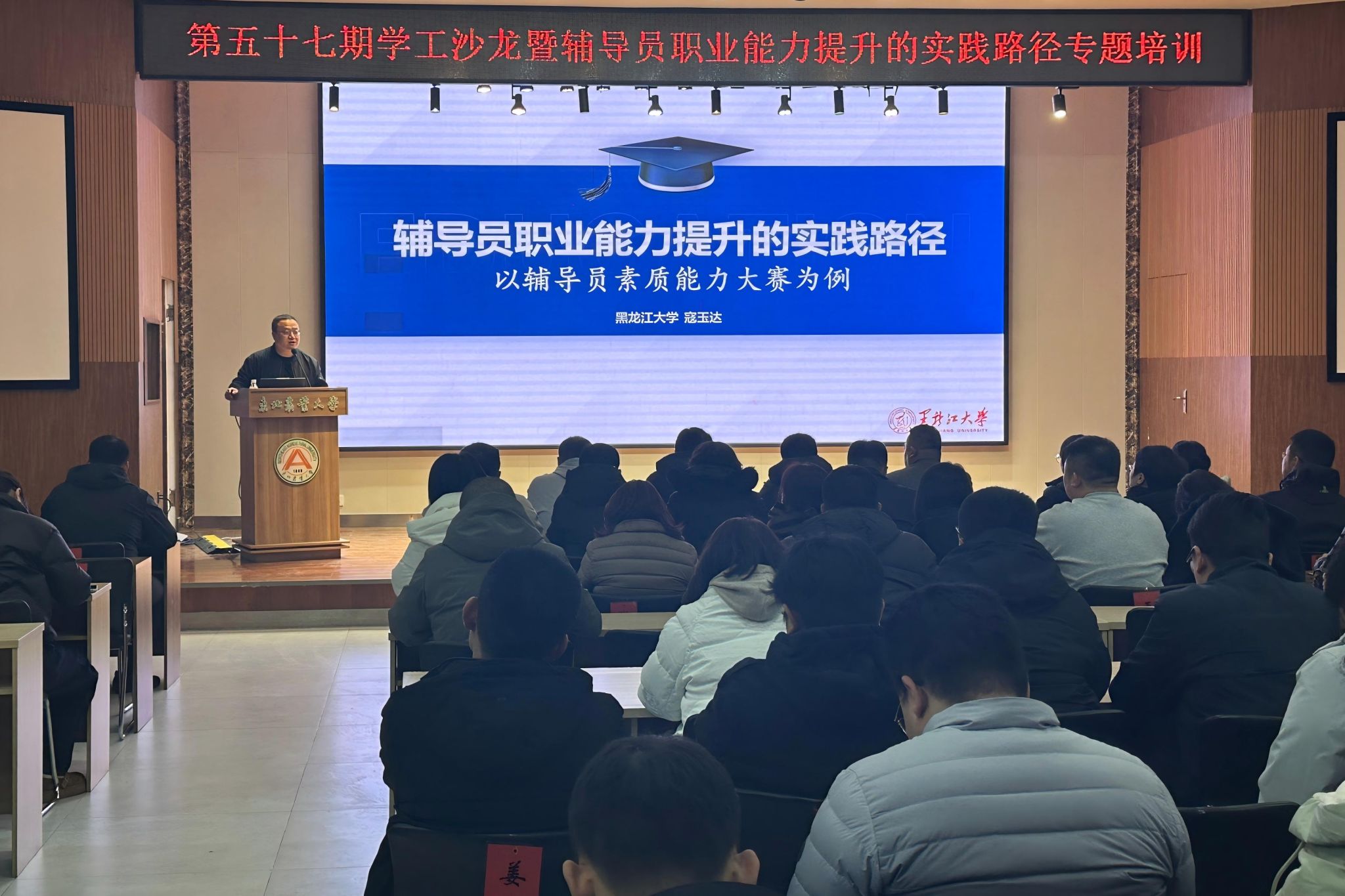 为深入落实立德树人根本任务,进一步加强我校辅导员队伍建设,全面提升辅导员职业能力和专业素养,11月25日上午,我校举办第五十七期学工沙龙暨辅导员职业能力提升实践路径专题培训。活动邀请黑龙江大学党委学生工作部(学生处、武装部)副部长寇玉达作专题讲座,我校学生工作部(学生处、武装部)全体工作人员,各学院党委副书记以及全体辅导员参加活动。活动由学生工作部(学生处、武装部)部(处)长汪志君主持。
