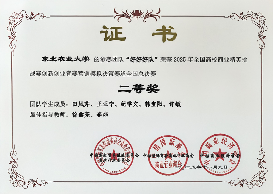 此次竞赛成绩的取得,是经济管理学院“以赛促学、以赛促教”育人理念的生动实践。学院始终注重专业学位教育的实践导向,通过整合校内外资源,构建“课程—实践—竞赛”三位一体的培养体系,助力学生在真实商业场景中锤炼决策能力与团队协作精神。指导教师团队全程深度参与,从策略制定到模拟推演,为学生提供专业化、精细化的指导,成为赛事突破的关键支撑。未来,学院将继续深化产教融合,进一步优化实践教学平台,不断完善人才培养模式,鼓励更多学生积极参与高层次学科竞赛,为他们提供更多展示自我、提升能力的机会,努力培养兼具扎实理论素养与卓越创新实践能力的复合型商科人才。